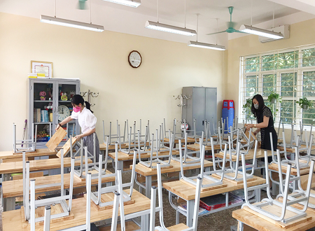 Theo báo cáo của Sở Giáo dục Đào tạo tỉnh, trong suốt thời gian học sinh, sinh viên nghỉ phòng, chống dịch, học tập tại nhà, ngành Giáo dục vẫn chỉ đạo các nhà trường thường xuyên vệ sinh trường, lớp, mở toàn bộ cửa để đảm bảo thông thoáng lớp học, đặc biệt vào những ngày ấm, khô ráo.