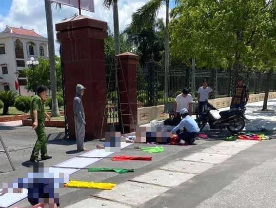 3 người thương vong do bị điện giật khi căng pano trước cổng trụ sở huyện ủy