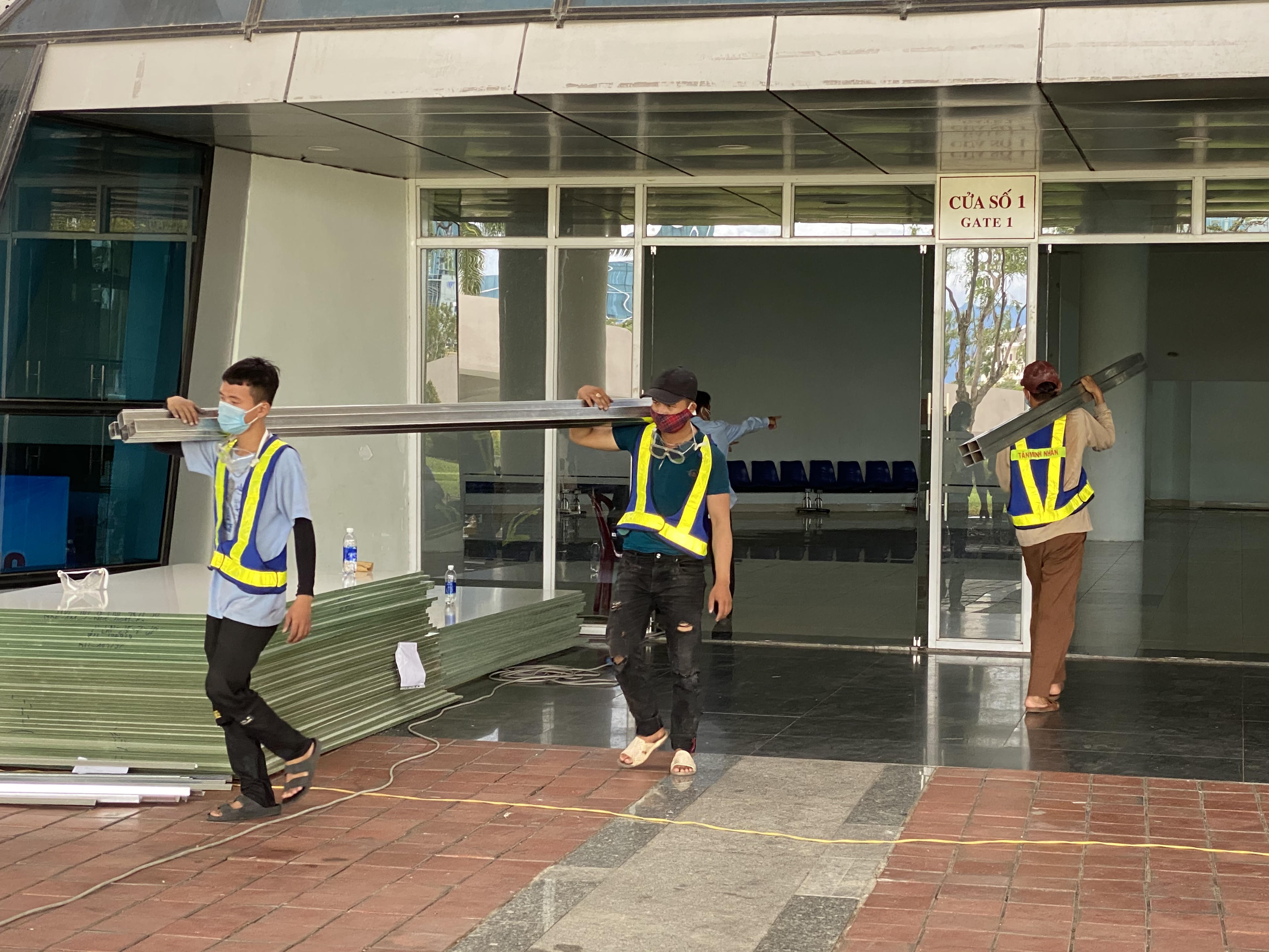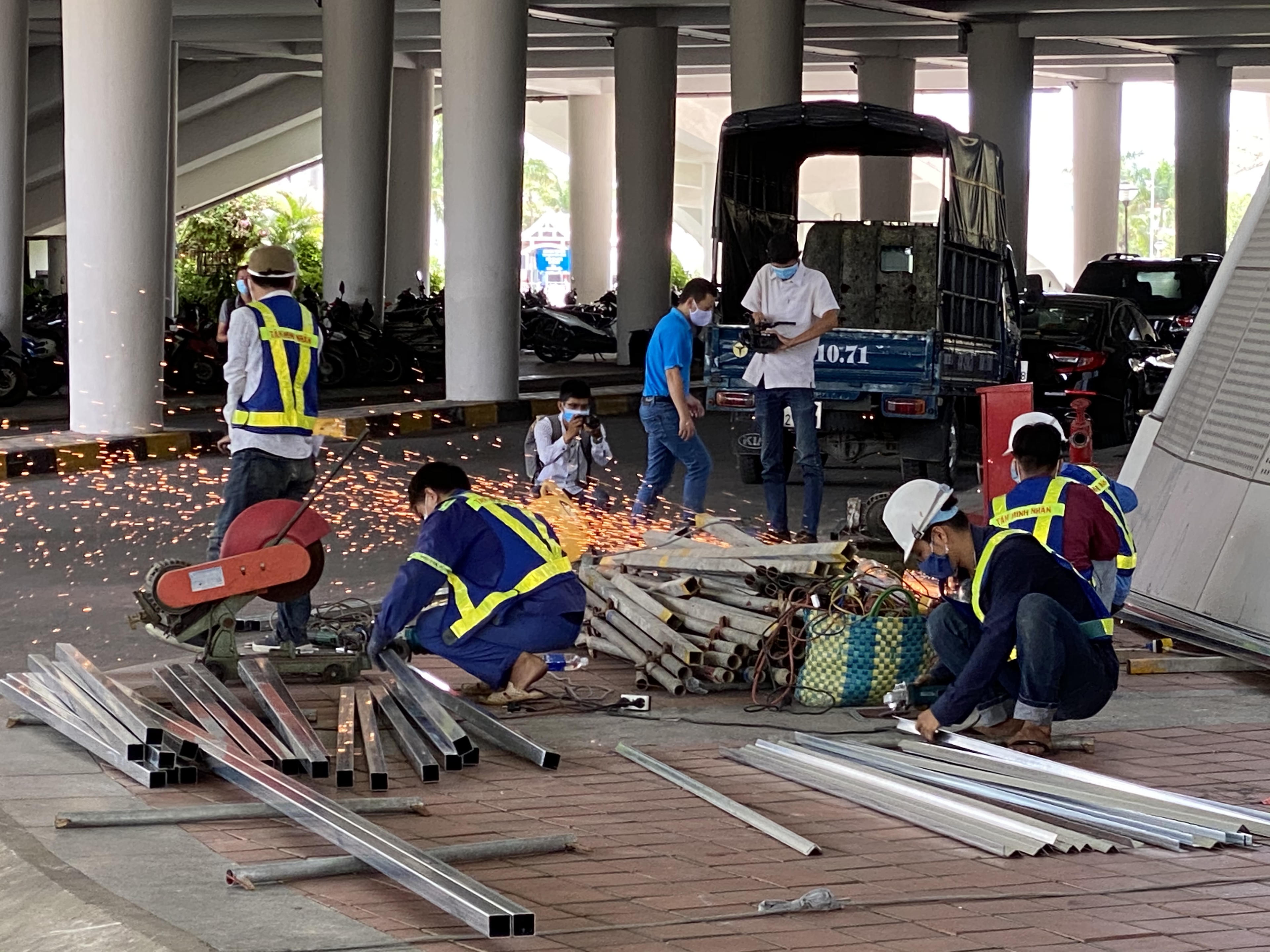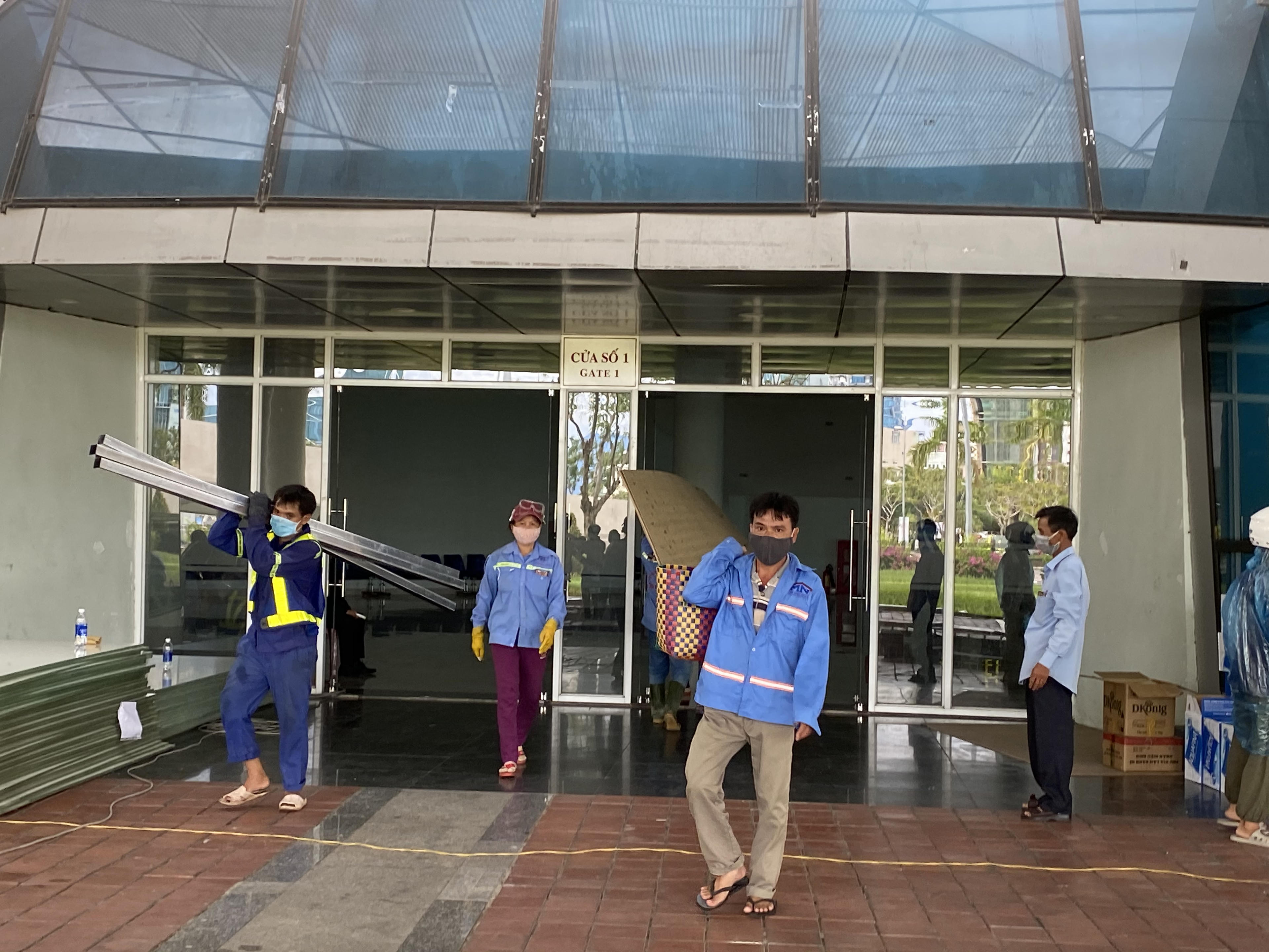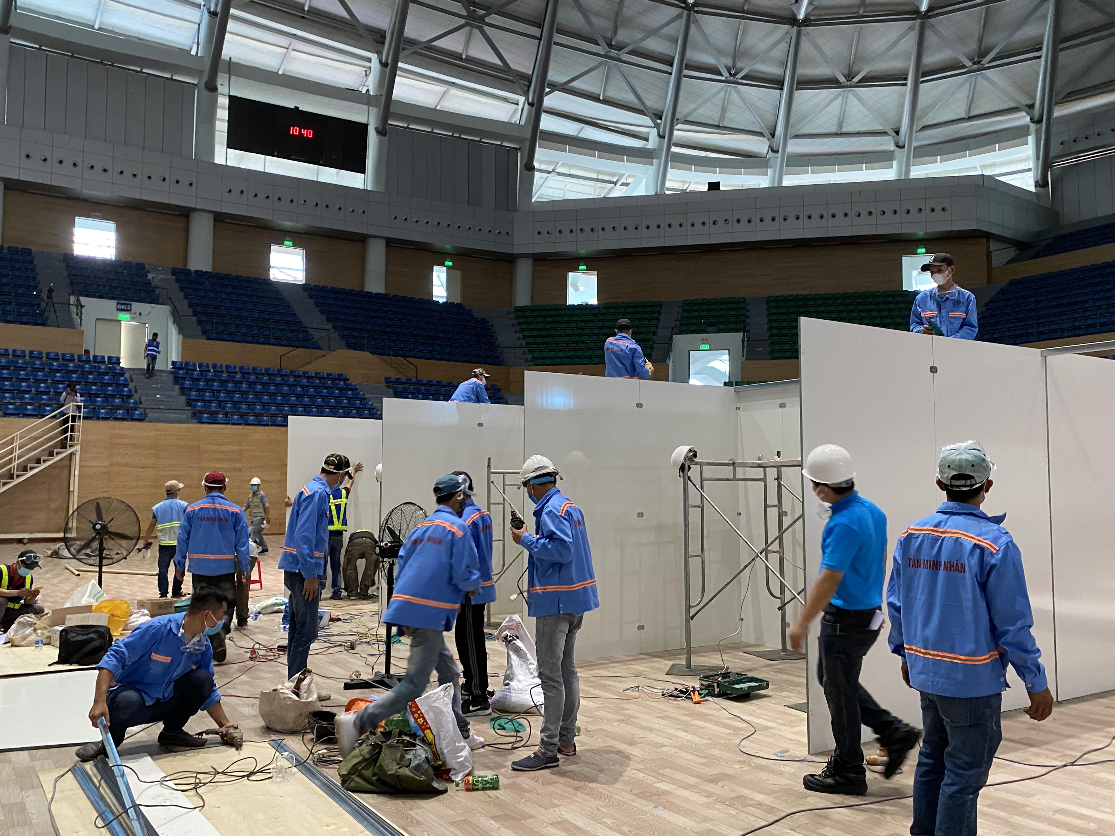 Cùng thời điểm, đơn vị thi công vận chuyển hơn 100 tấn vật liệu, gồm các ống sắt, gỗ lắp ghép đến Cung văn hóa thể thao Tuyên Sơn. Trong 4 ngày, hàng trăm công nhân sẽ chia làm 3 ca, làm việc 24/24 giờ để hoàn thành bệnh viện dã chiến tại với quy mô 2.000 giường bệnh.