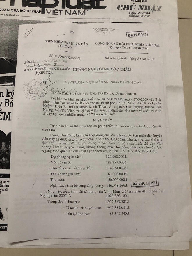 (PLVN) - Trước đây, Báo PLVN có loạt bài điều tra, phản ánh vụ án của ông Huỳnh Hiếu Bi – cựu Bí thư Huyện ủy Cầu Ngang (tỉnh Trà vinh) bị tòa án các cấp kết án 3 năm tù giam.