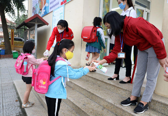 Tại các trường có các tổ y tế thường trực, trang bị khẩu trang, nước sát khuẩn, nước rửa tay khô vệ sinh phòng dịch. Cùng với đẩy mạnh tuyên truyền các biện pháp phòng chống dịch đến học sinh và phụ huynh, các nhà trường cũng sẵn sàng các phương án phòng chống dịch.