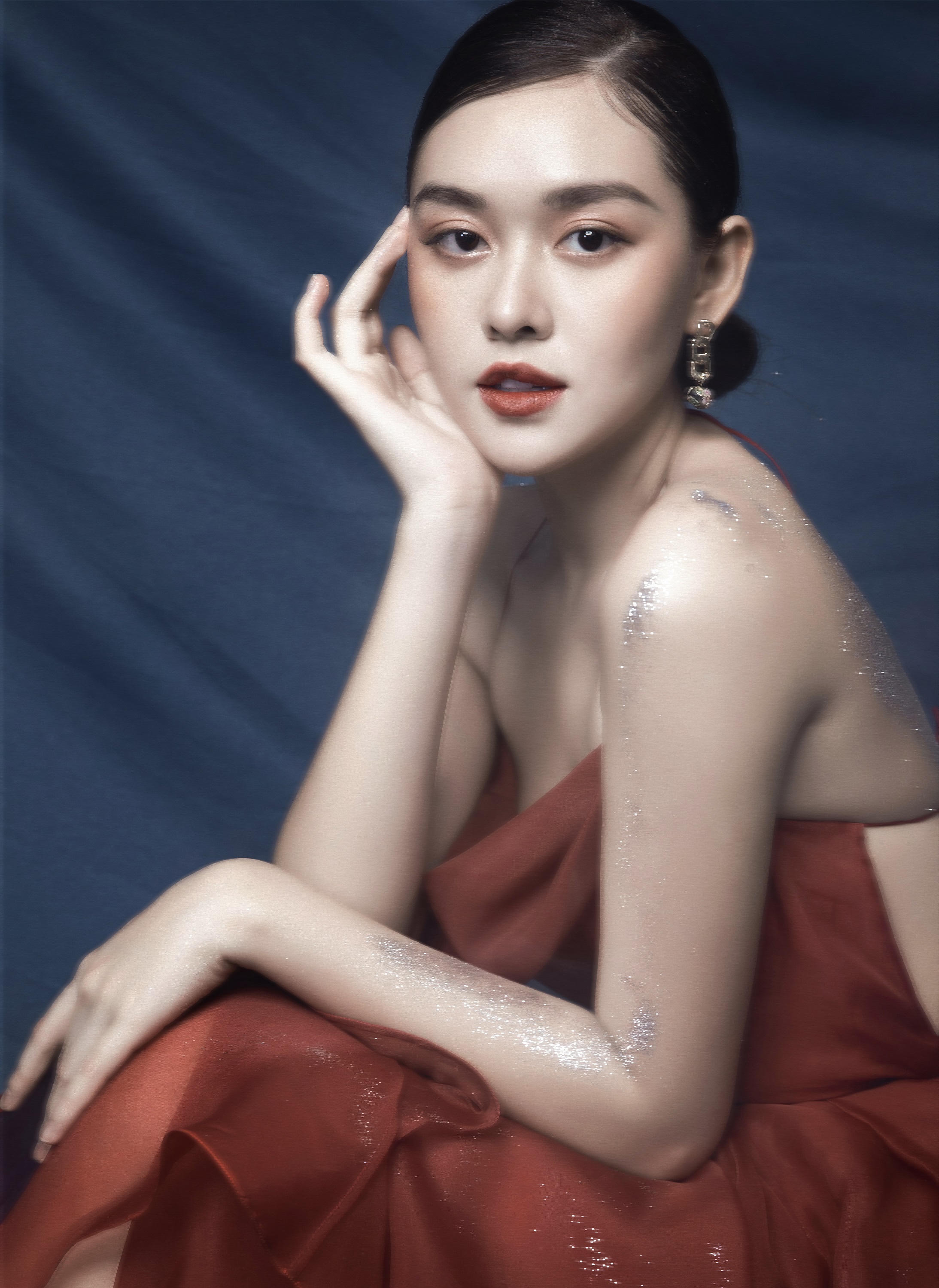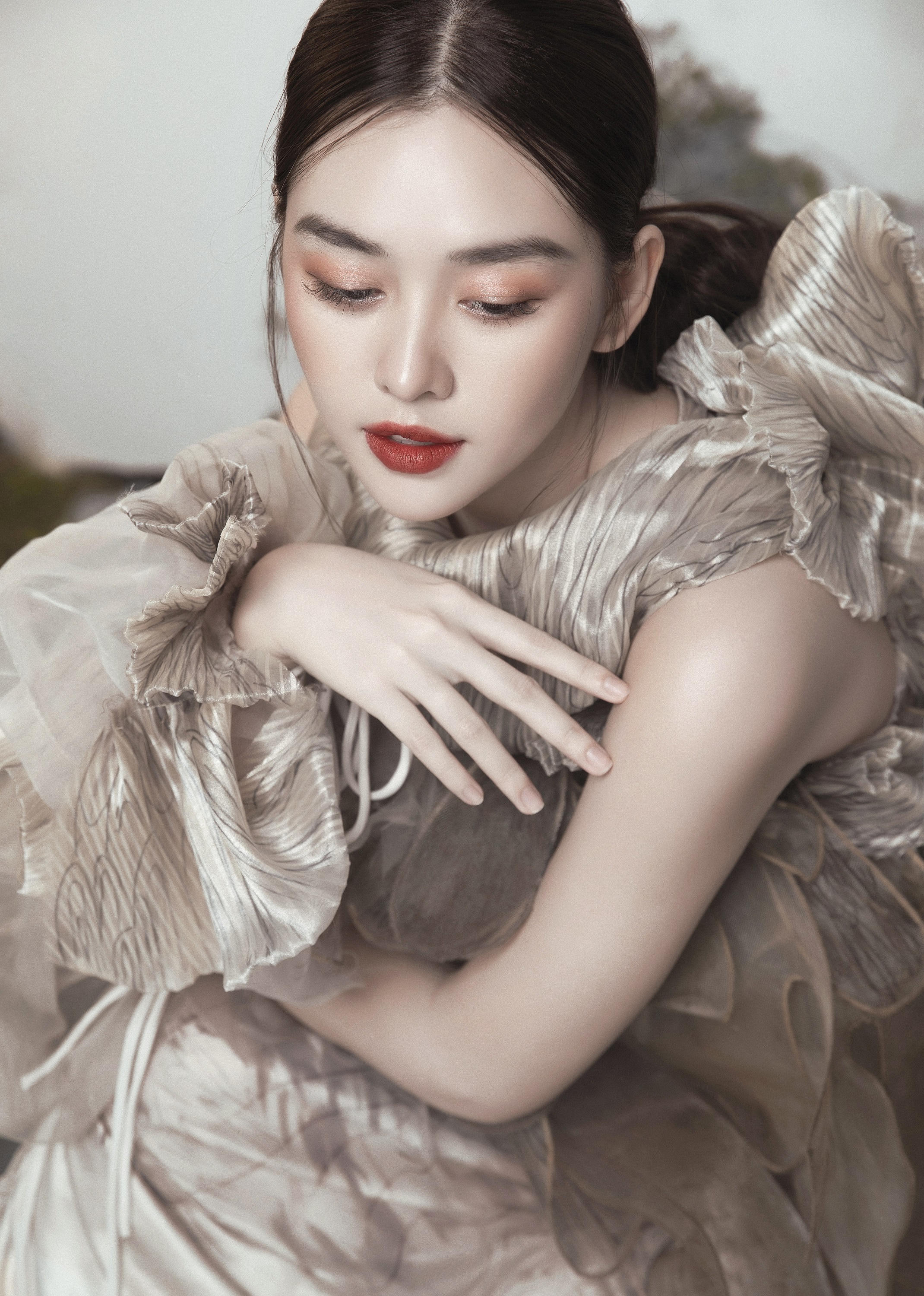 Gương mặt sáng cùng làn da trắng càng thêm cuốn hút hơn khi kết hợp với màu son đỏ.