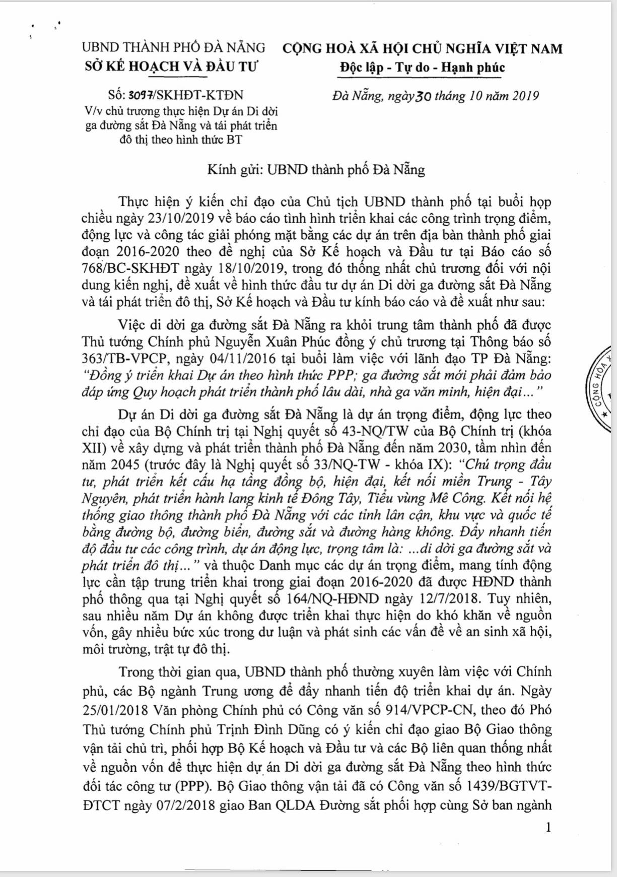 Theo thông tin sơ bộ, phương án mới này sẽ gồm 2 tiểu dự án. Tiểu dự án 1, di dời ga đường sắt Đà Nẵng và tái phát triển đô thị, đầu tư theo hình thức BT; Tiểu dự án 2, đền bù giải tỏa phục vụ dự án di dời ga đường sắt Đà Nẵng và tái phát triển đô thị, sử dụng nguồn vốn ngân sách TP Đà Nẵng.