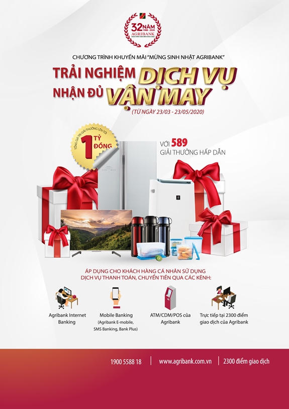 (PLVN) - Là Ngân hàng Thương mại hàng đầu Việt Nam trên mọi phương diện, trong suốt 32 năm phát triển (26/3/1988- 26/3/2020), Ngân hàng Nông nghiệp và Phát triển Nông thôn Việt Nam (Agribank) không ngừng nỗ lực bền bỉ vừa làm tròn nhiệm vụ chính trị của NHTM được Đảng, Chính phủ tin tưởng giao phó, vừa kinh doanh an toàn, hiệu quả, không ngừng khẳng định vai trò chủ lực trên thị trường tài chính nông nghiệp, nông thôn, cùng Niềm tin, khát vọng Đổi mới vươn tầm khu vực và thế giới khi Việt Nam hội nhập ngày càng sâu rộng.