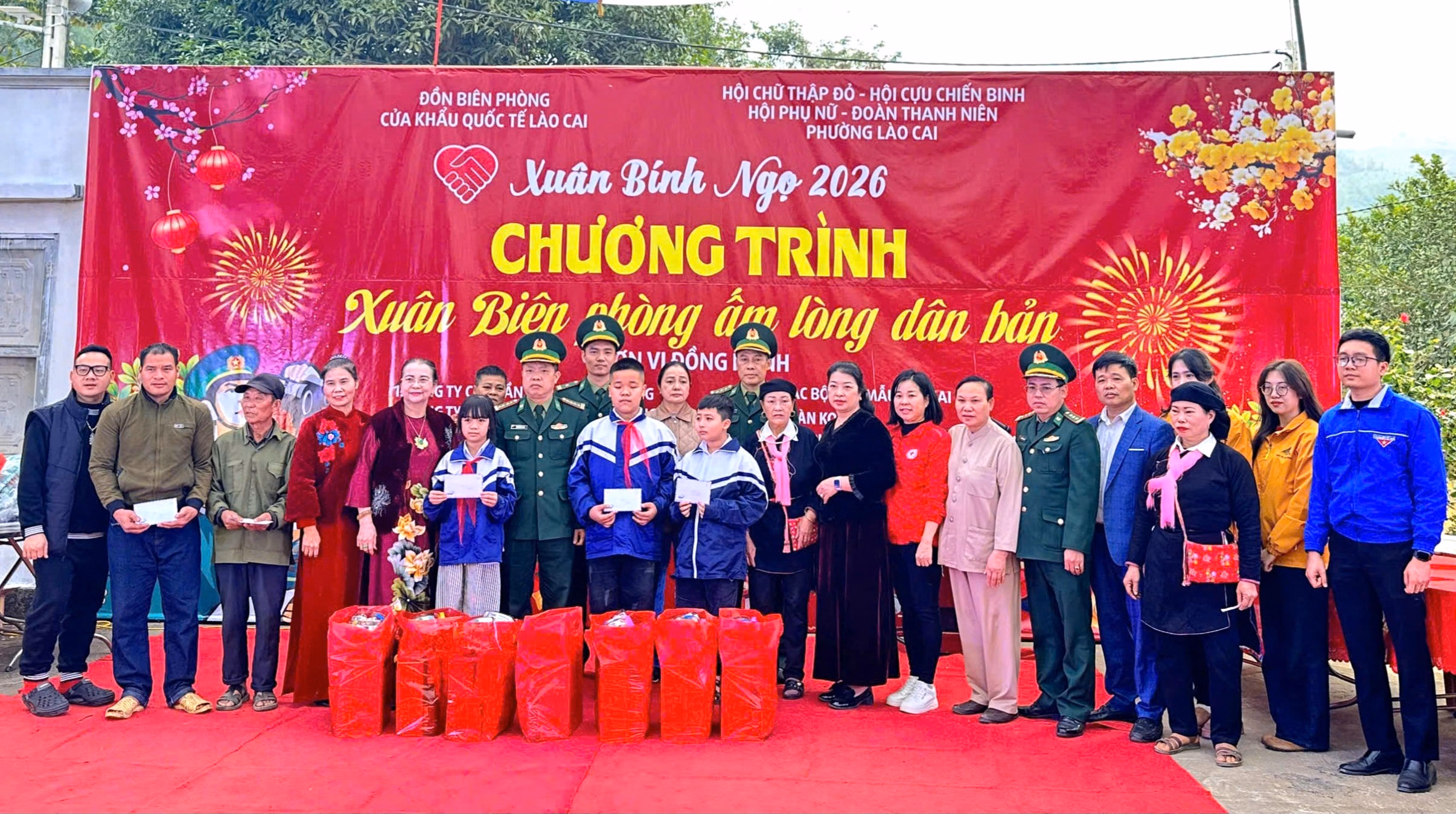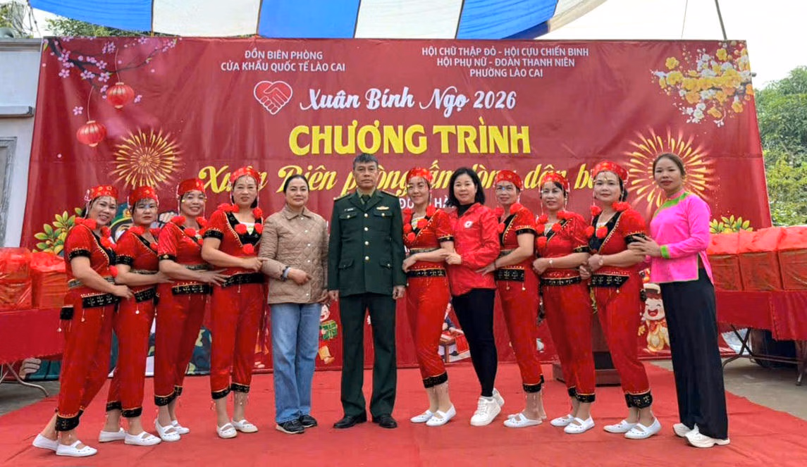 (PLVN) - Ngày 28/1, tại Nhà văn hóa tổ dân phố Nậm Sò, phường Lào Cai, tỉnh Lào Cai, Đồn Biên phòng Cửa khẩu Quốc tế Lào Cai phối hợp với Ủy ban MTTQ Việt Nam và các tổ chức chính trị - xã hội phường Lào Cai tổ chức Chương trình “Xuân Biên phòng ấm lòng dân bản” năm 2026.