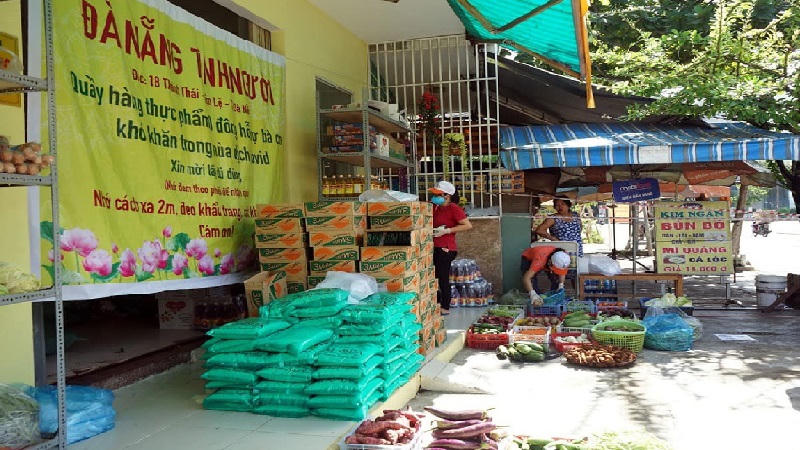 Rau, củ, quả được mua mới hằng ngày từ chợ đầu mối Hòa Cường. Mỗi lần đi chợ, người dân được "mua": 10kg gạo, 1 vỉ trứng gà, mì tôm, 1 lít dầu ăn, nước mắm, muối và 12 loại rau, củ, quả đủ để sử dụng trong 3 - 5 ngày. Những người nhận quà hầu hết là hộ nghèo, người già neo đơn, người có hoàn cảnh khó khăn…, theo danh sách của địa phương.