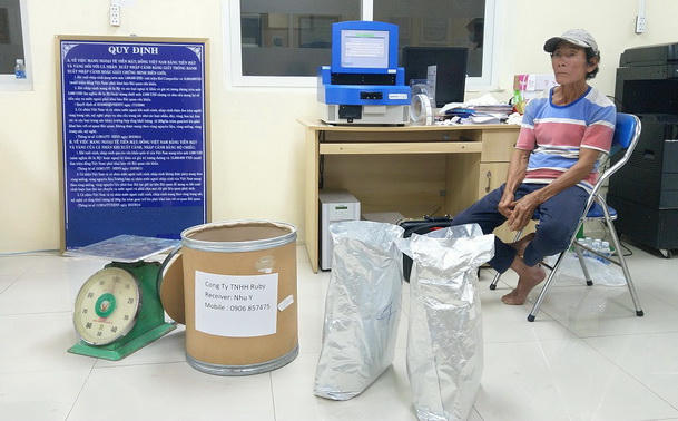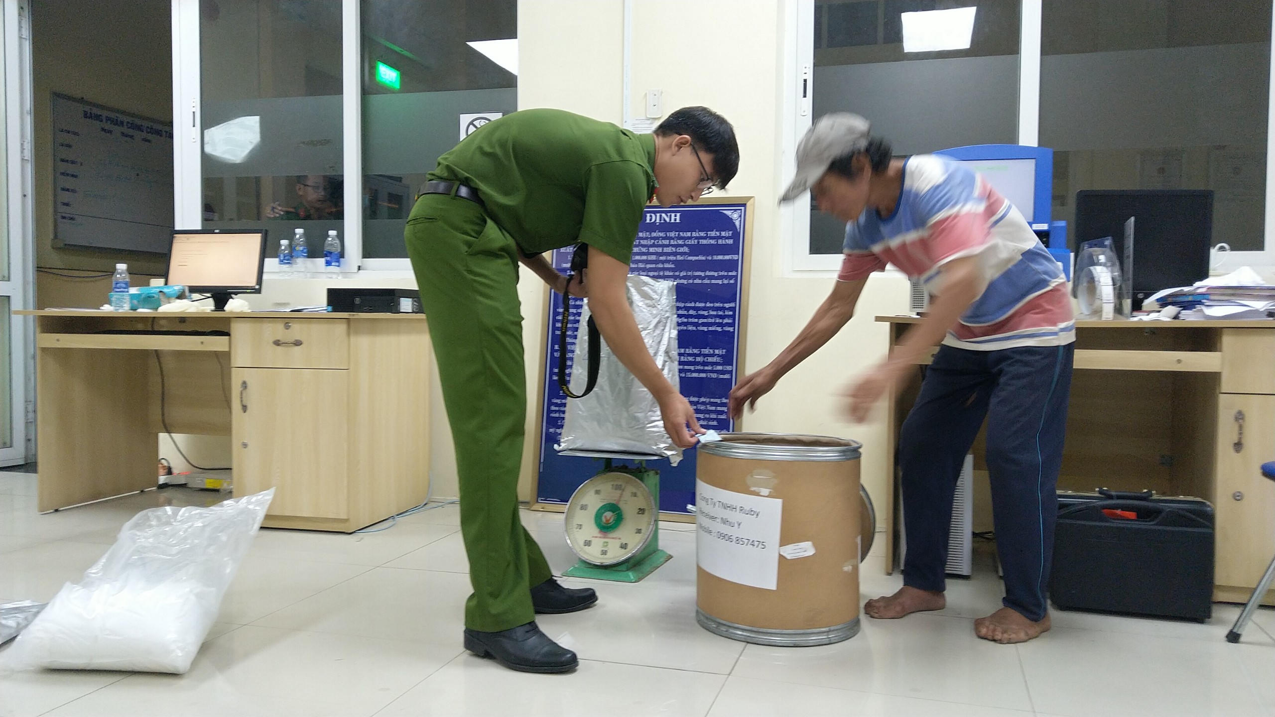 Qua kiểm tra, lực lượng chức năng phát hiện trong thùng hàng mà người đàn ông này mang theo có 2 bọc nilon bên trong chứa chất bột màu trắng, có trọng lượng khoảng 10,4 kg (nghi vấn là ma túy). Qua kiểm tra nhanh tang vật, kết quả ban đầu là ma túy loại Ketamin.