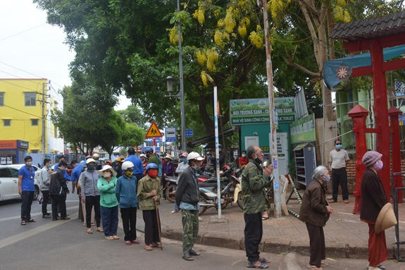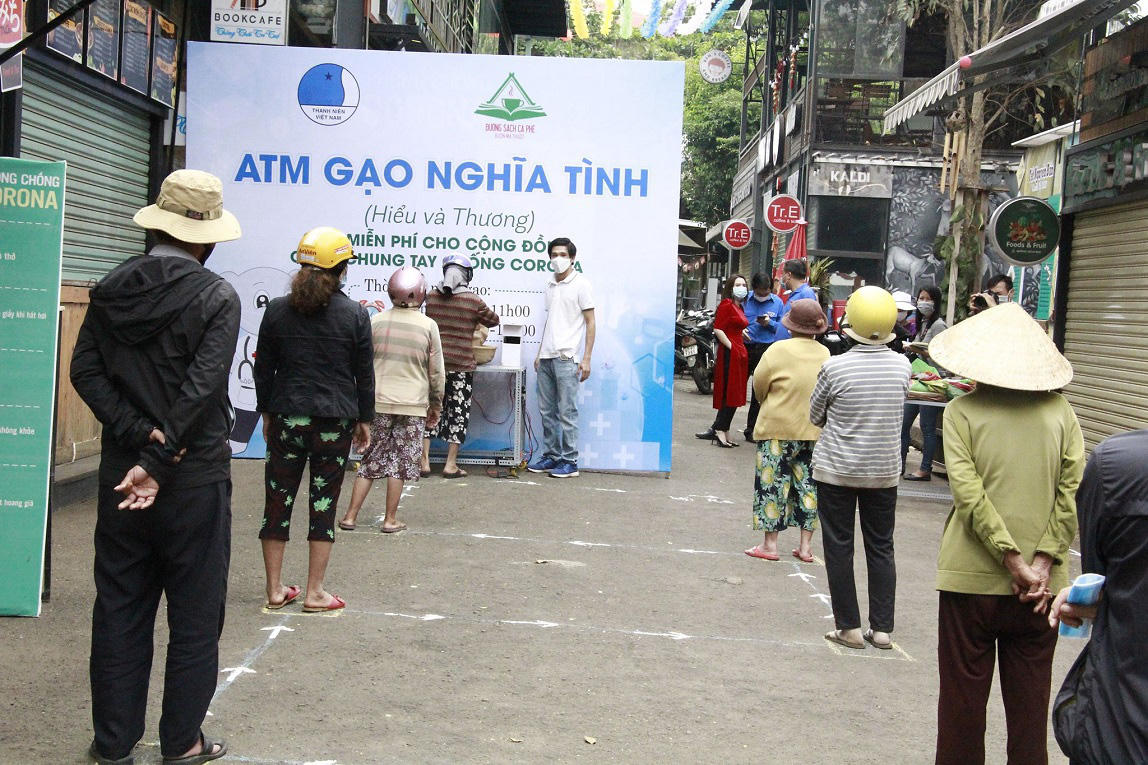 Sáng sớm, hàng trăm người dân có hoàn cảnh khó khăn đã đến khu vực máy phát gạo nói trên để được nhận gạo miễn phí. Tất cả đều được hướng dẫn xếp hàng, đứng cách xa nhau theo quy định, rửa tay diệt khuẩn trước khi nhận gạo. Sáng cùng ngày, có chục mạnh thường quân đã đến hỗ trợ hàng tấn gạo.