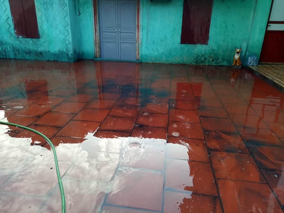 Hàng ngày khói bụi phủ kín cả khu vực này. Một ngày phải lau nhà không biết bao nhiêu lần. Mưa xuống, bụi than đọng lại đen cả góc sân, do hít phải nhiều khói bụi nên bà cũng như nhiều người hàng xóm xung quanh luôn bị ho, thậm chí phải dùng khẩu trang cả ngày.