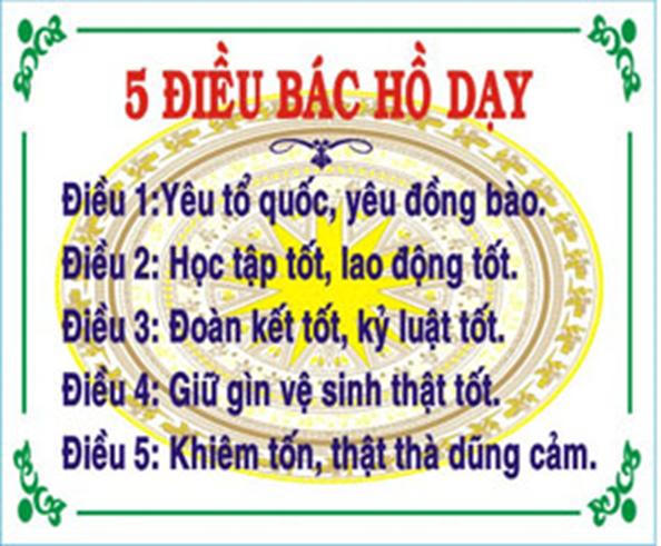 Mỗi Thiếu niên, Nhi đồng và nói đúng hơn là mỗi người dân Việt nam khi bắt đầu bước chân vào bậc Tiểu học đều thuộc 5 điều Bác Hồ dạy. 05 điều với tròn 30 từ thôi mà nó bao hàm tất cả, có thể nói: Mỗi người dân Việt Nam chỉ cần làm tốt 5 điều Bác Hồ dạy thôi là đã có thể trở thành một Công dân mẫu mực.