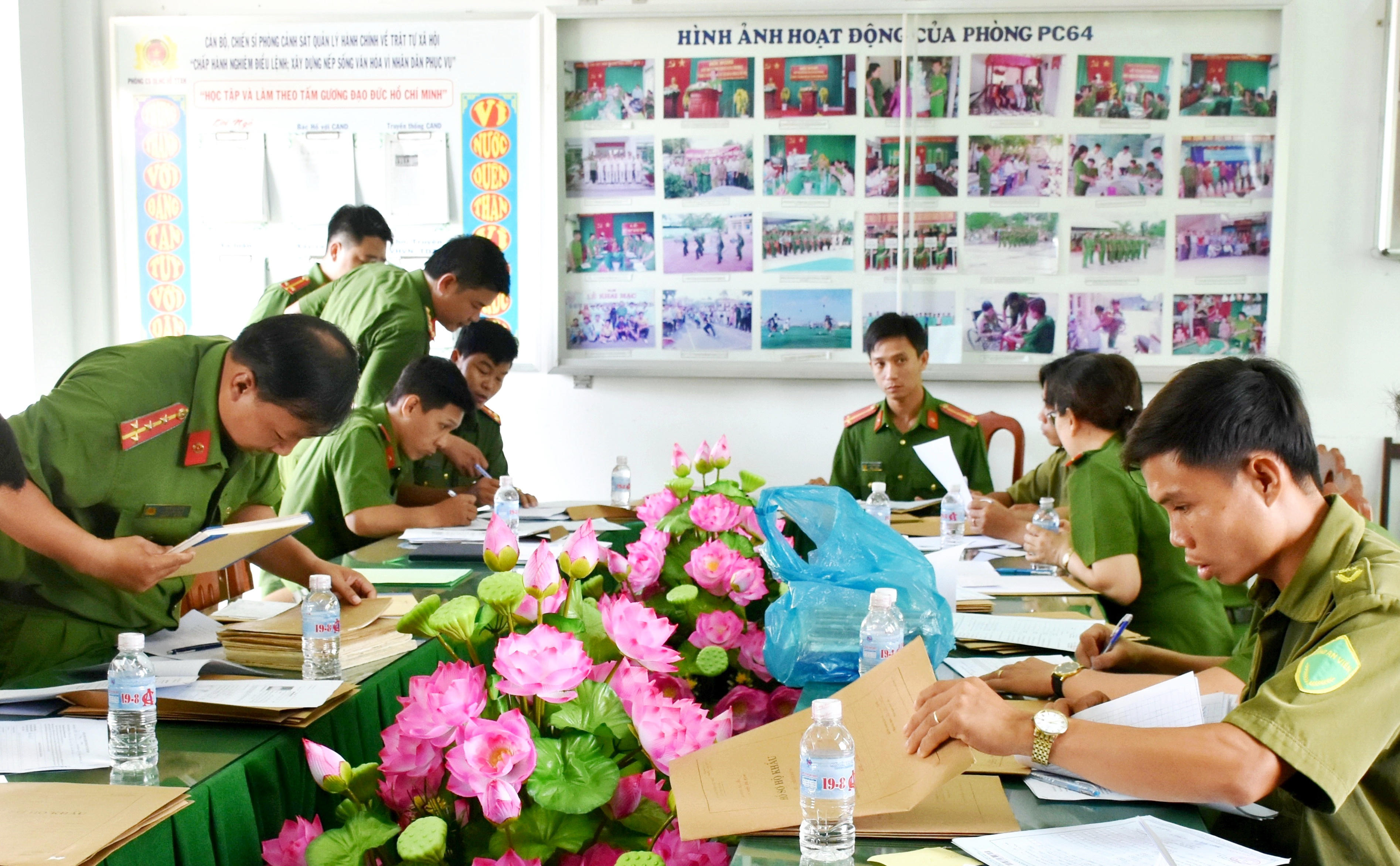 Đồng thời, chỉ đạo Phòng Cảnh sát quản lý hành chính về trật tự xã hội (PC06) Công an tỉnh bố trí các Tổ lưu động để phối hợp với Công an các địa phương thu nhận hồ sơ, tra cứu thông tin công dân trên hệ thống, chụp ảnh chân dung, lấy vân tay để hoàn tất các thủ tục cấp căn cước công dân cho cán bộ, công nhân viên chức, lực lượng vũ trang cấp huyện.