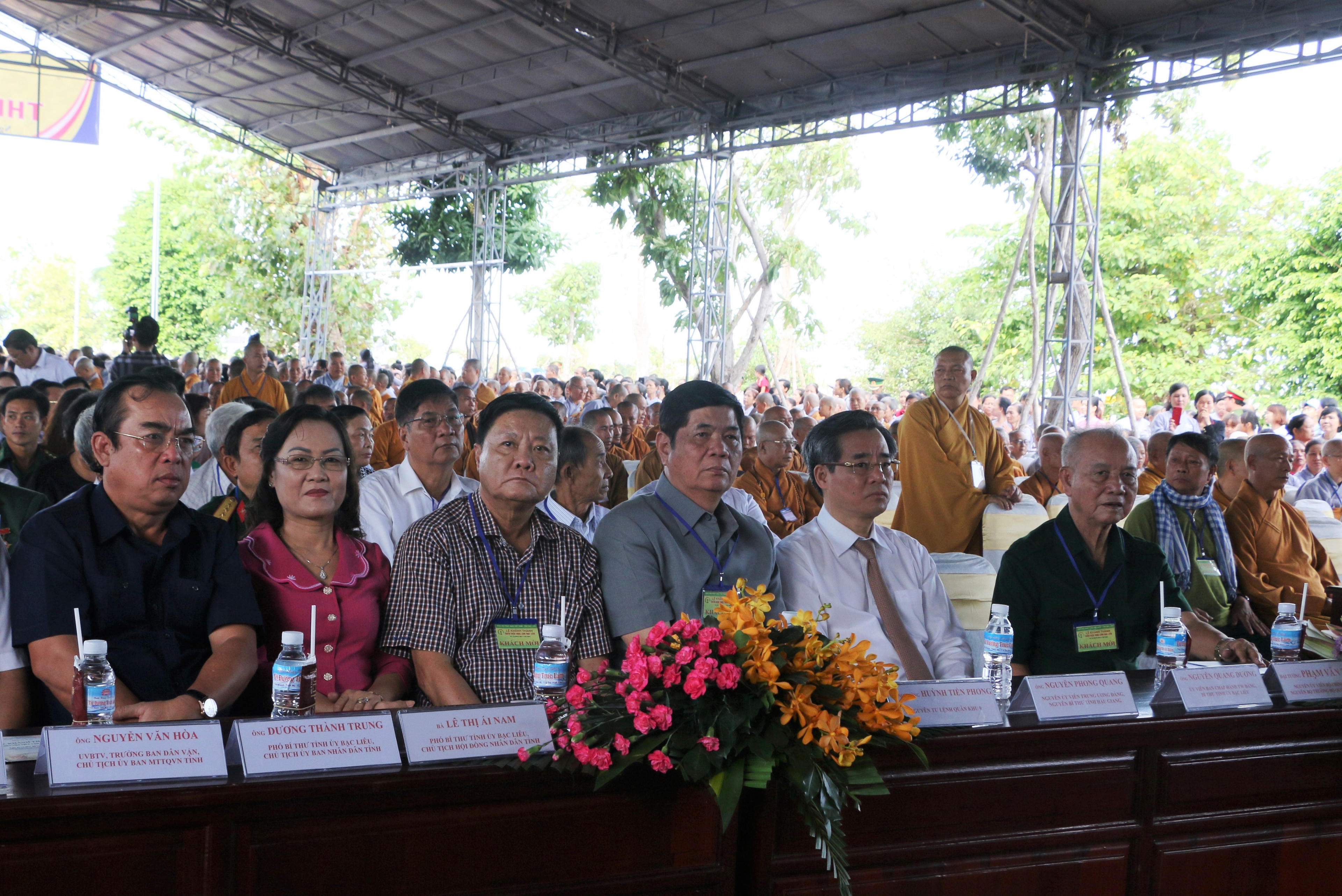 Đến dự có Đại tướng Phạm Văn Trà - Nguyên Ủy viên Bộ Chính trị, nguyên Bộ trưởng Bộ Quốc phòng; Ông Nguyễn Quang Dương - UVBCH Trung ương Đảng, Bí thư tỉnh ủy Bạc Liêu; Bà Lê Thị Ái Nam - Phó Bí thư Thường trực Tỉnh ủy, Chủ tịch HĐND tỉnh; Ông Dương Thành Trung - Phó Bí thư Tỉnh ủy, Chủ tịch UBND tỉnh; Bà Lâm Thị Sang - Phó Chủ tịch UBND tỉnh; Chư tôn hòa thượng trong HĐCM, HĐTS trung ương và các tỉnh, thành cùng đông đảo Chư tôn đức tăng ni, phật tử, nhân dân trong và ngoài tỉnh.