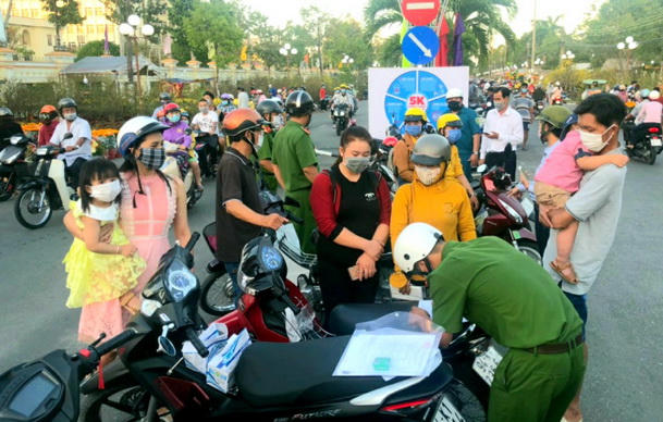 Hôm nay, 9/2, Công an thành phố Bạc Liêu phối hợp với UBND các xã, phường trên địa bàn đồng loạt ra quân tuyên truyền, nhắc nhở và xử lý những trường hợp không đeo khẩu trang nơi công cộng.