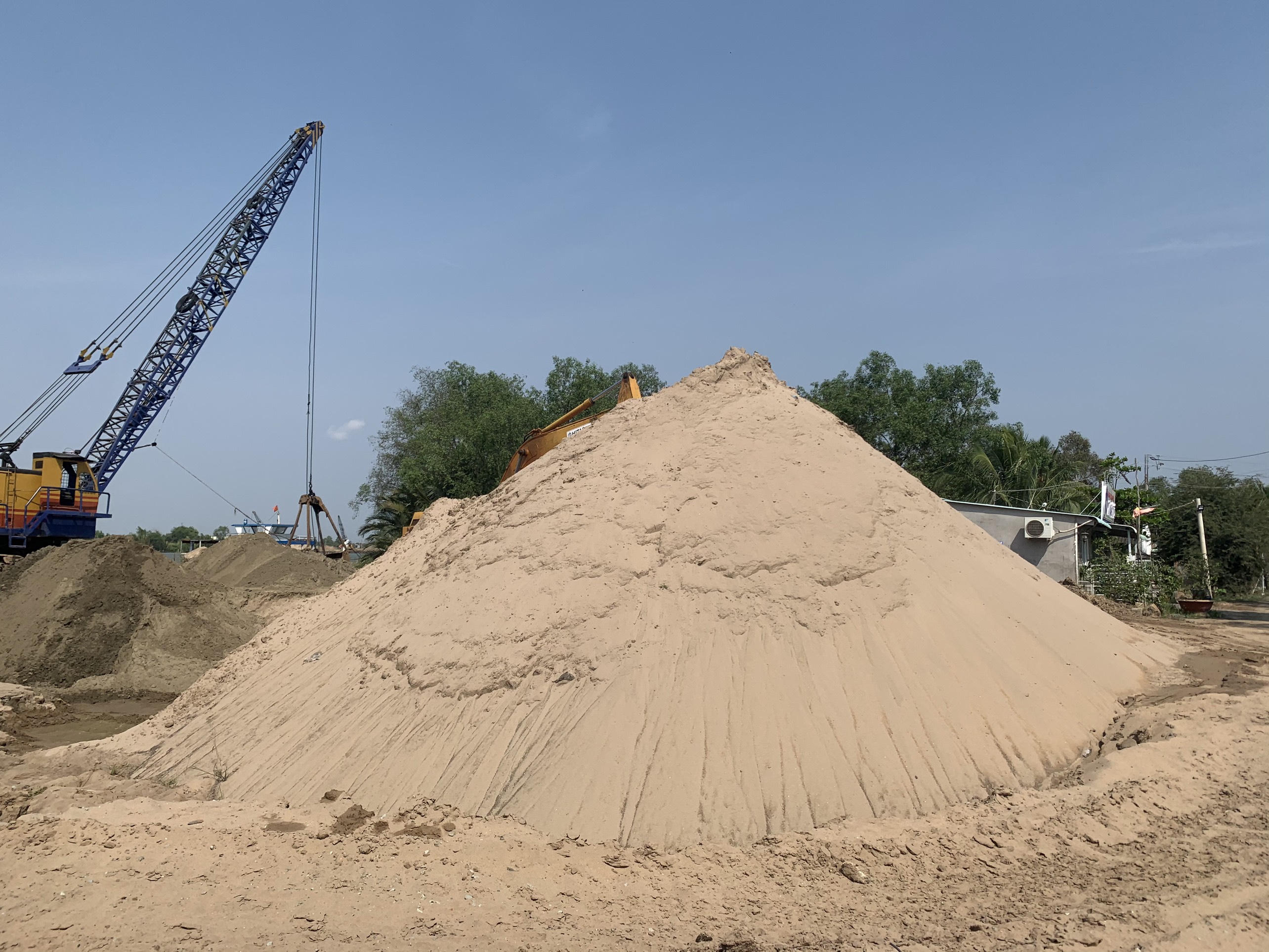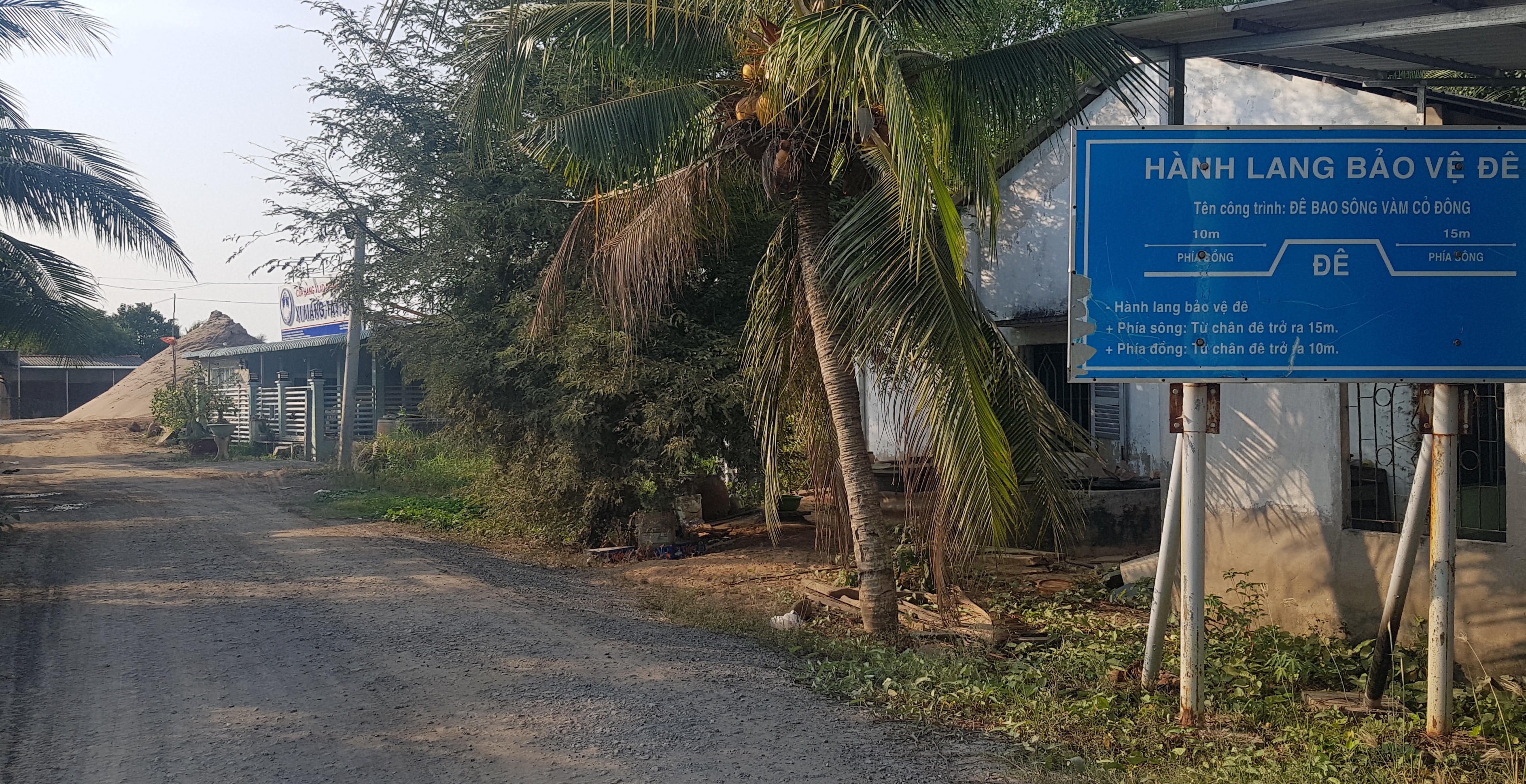 Trong đó, phải nhắc đến là bãi tập kết cát tại ấp 3, xã Tân Phước Tây, huyện Tân Trụ (cách bến đò Bến Bạ khoảng 100m) đã lấn chiếm, hành lang bảo vệ đê để tập kết, trung chuyển vật liệu xây dựng vi phạm Luật Đê điều.