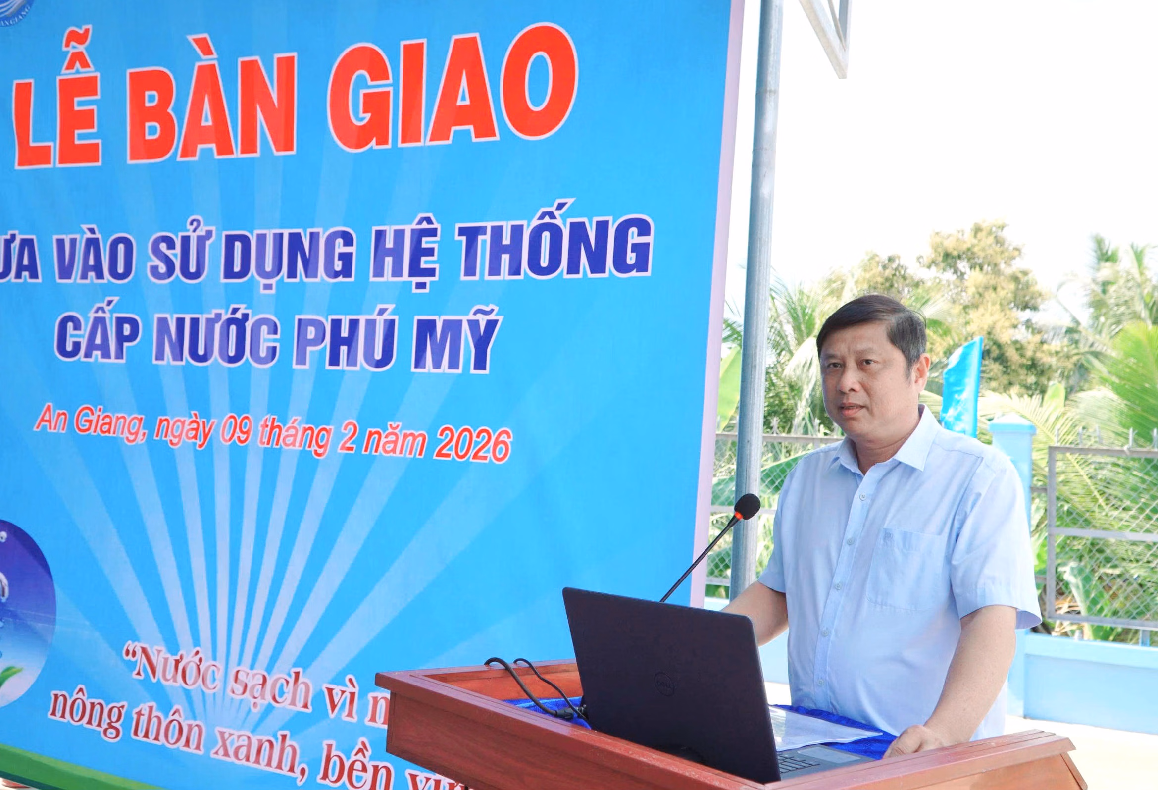 Phó Giám đốc Sở Nông nghiệp và Môi tỉnh An Giang bày tỏ biết ơn sự quan tâm của Bộ Nông nghiệp và Môi trường đã đầu tư xây dựng các công trình cung cấp nước sinh hoạt cho người dân nông thôn tại các vùng có nguồn nước bị ô nhiễm, vùng khan hiếm nước, vùng bị ảnh hưởng xâm nhập mặn.