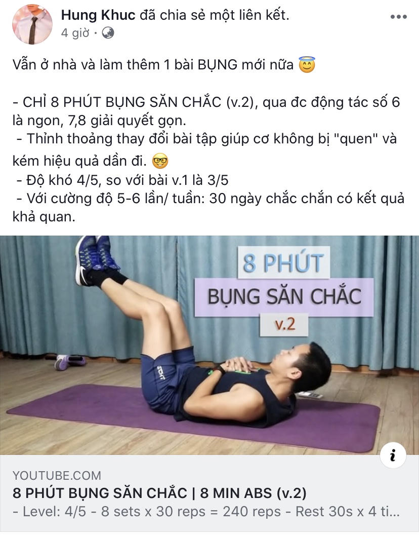 Kì nghỉ kéo dài, không còn bộn bề trong bài vở, công việc hằng ngày như trước nữa, giới trẻ có dịp sống chậm lại, thay đổi thói quen xấu hằng ngày bằng các hoạt động lành mạnh hơn như tập thể dục lúc rảnh rỗi (Gym, Yoga, chạy bộ quanh nhà,...) Các video clip dạy tập thể dục cũng thu hút được lượng lớn người xem.