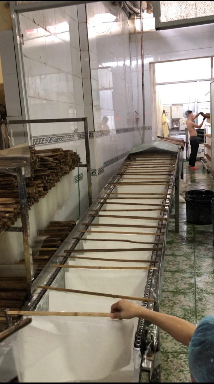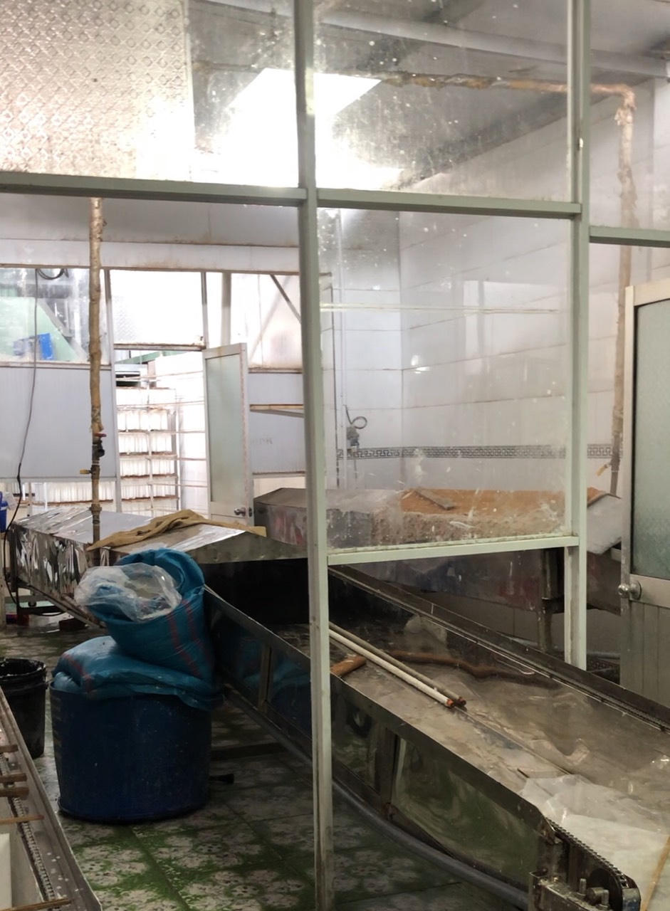 Sau nhiều ngày trong vai người cần mở đại lý phân phối bánh tráng, chúng tôi tiếp cận xưởng sản xuất của Công ty Hoàng Kim Minh. Tại đây, chúng tôi ghi nhận khung cảnh luộm thuộm, nhếch nhác của khu vực sản xuất chính.