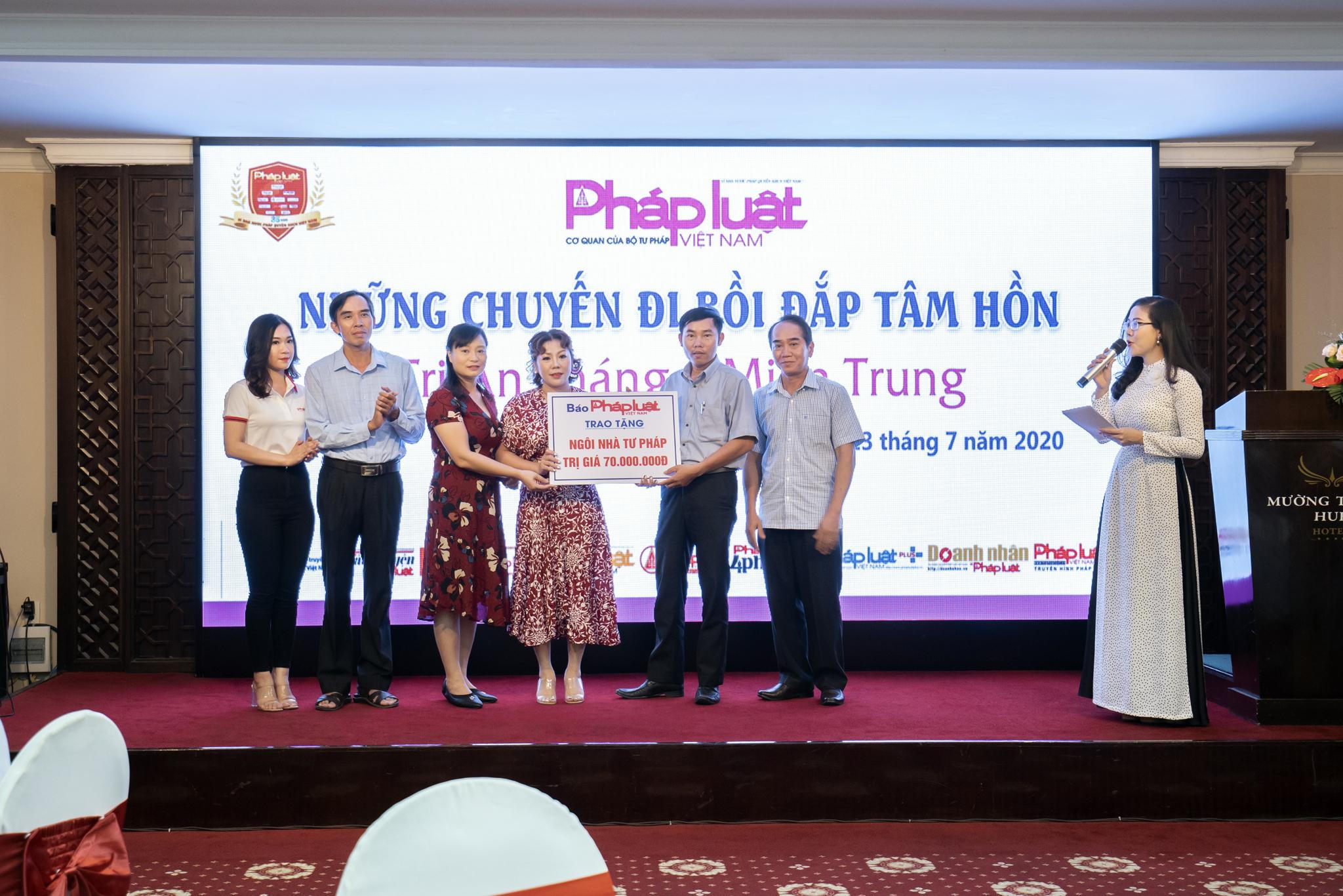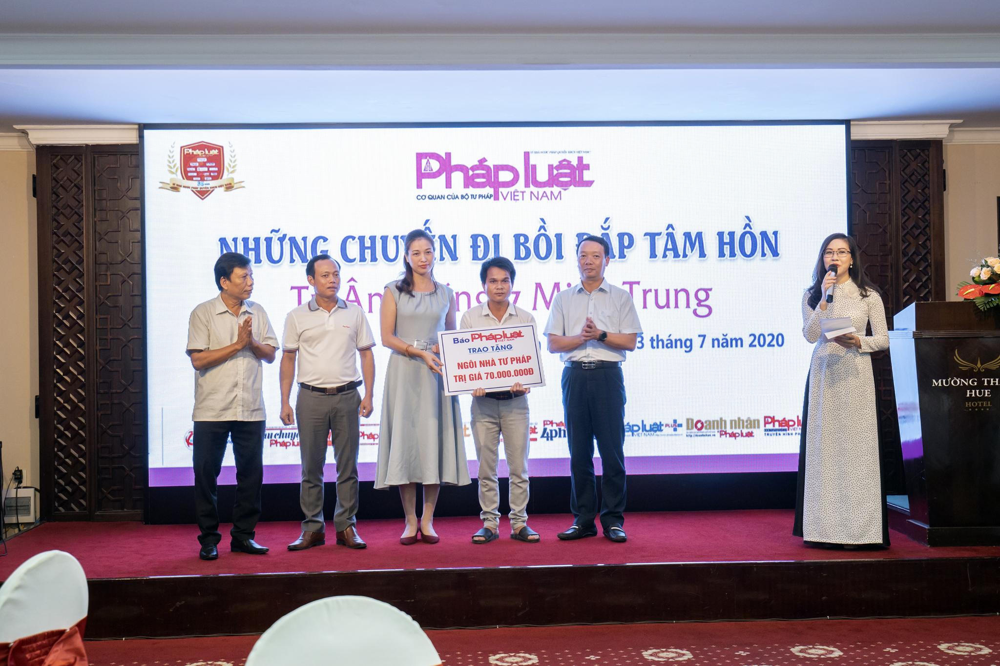 Tại buổi lễ tri ân, Báo PLVN đã trao tặng 2 “Mái ấm tư pháp”, mỗi mái ấm trị giá 70 triệu đồng cho anh Hà Văn Bình, cán bộ tư pháp xã Quảng Lợi, huyện Quảng Điền, tỉnh Thừa Thiên – Huế và anh Hồ Văn Hang, cán bộ tư pháp xã Ba Nang, huyện Đăkrông, tỉnh Quảng Trị.