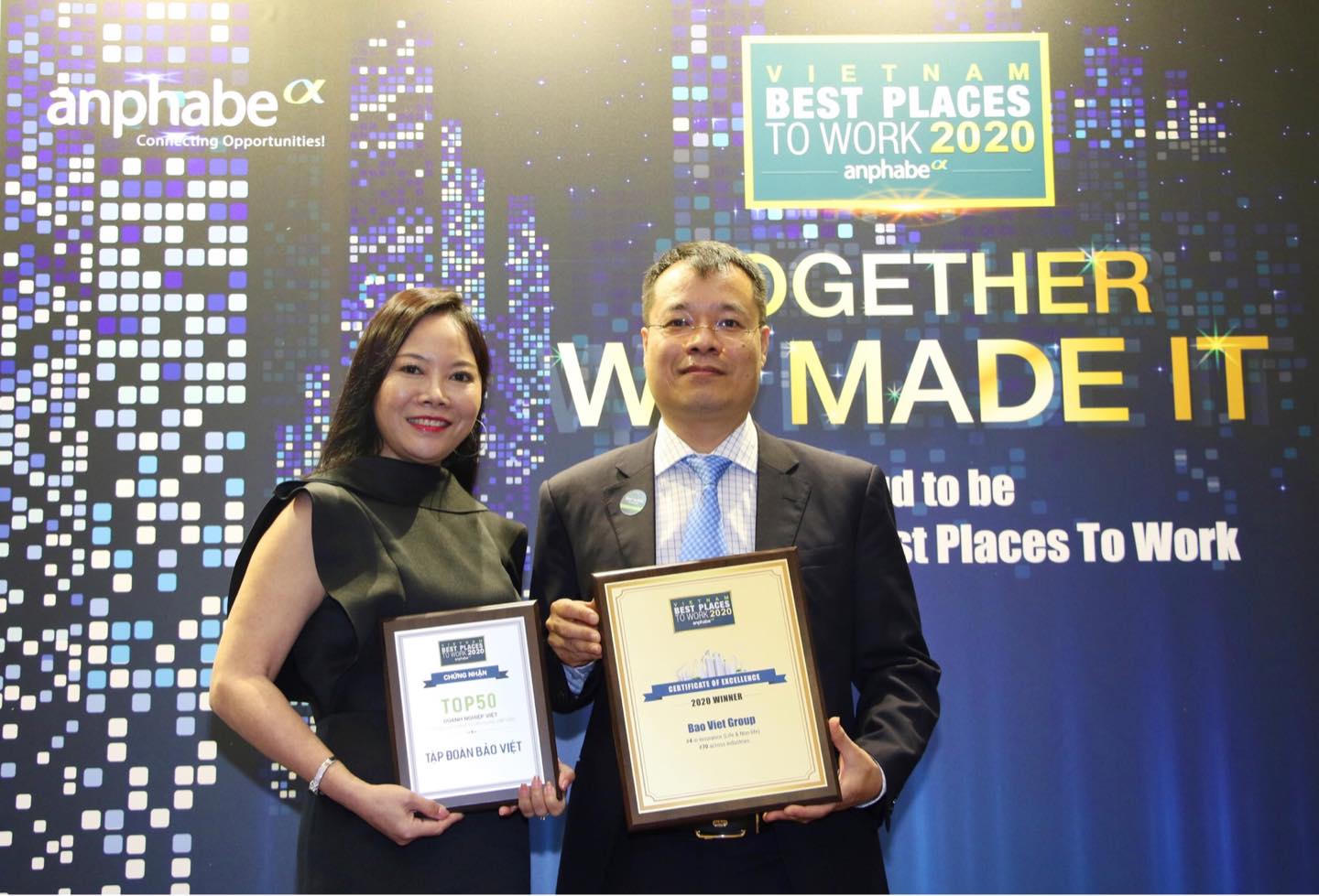 Bảo Việt - “Nơi làm việc tốt nhất Việt Nam” và “Thương hiệu nhà tuyển dụng hấp dẫn nhất Việt Nam” năm 2020 do Anphabe bình chọn