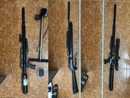 Khám xét chỗ ở của các đối tượng, Cơ quan điều tra thu giữ 3 khẩu súng tự chế cùng nhiều đạn bi và 2 bình kích điện tự chế sử dụng đánh bắt cá.