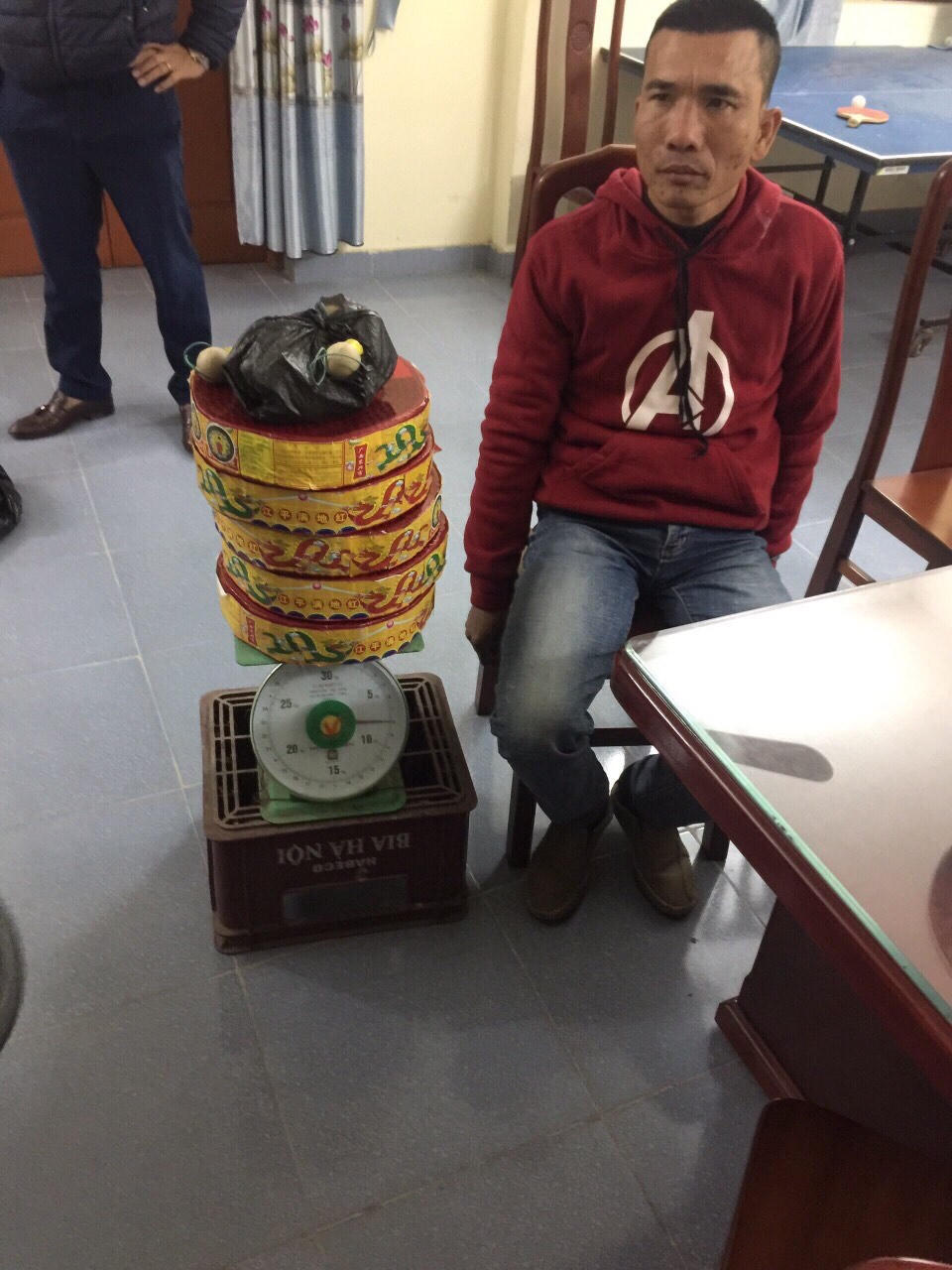 Sau khi gặp nhau, người đàn ông đó đã dẫn Cường đi xuống gầm cầu Tràng Thưa rồi đưa cho Cường 03 túi ni lông. Trong đó, có 01 túi đựng 03 bánh pháo, 01 túi đựng 02 bánh pháo, túi còn lại đựng 20 quả pháo trứng. Để tránh bị phát hiện, Cường cùng người đàn ông đã cho 03 túi đựng pháo vào 01 hộp cát tông rồi dán băng dính lại. Sau đó, Cường cho thùng đựng pháo trên lên xe mô tô của mình và chở đến địa điểm đã hẹn.