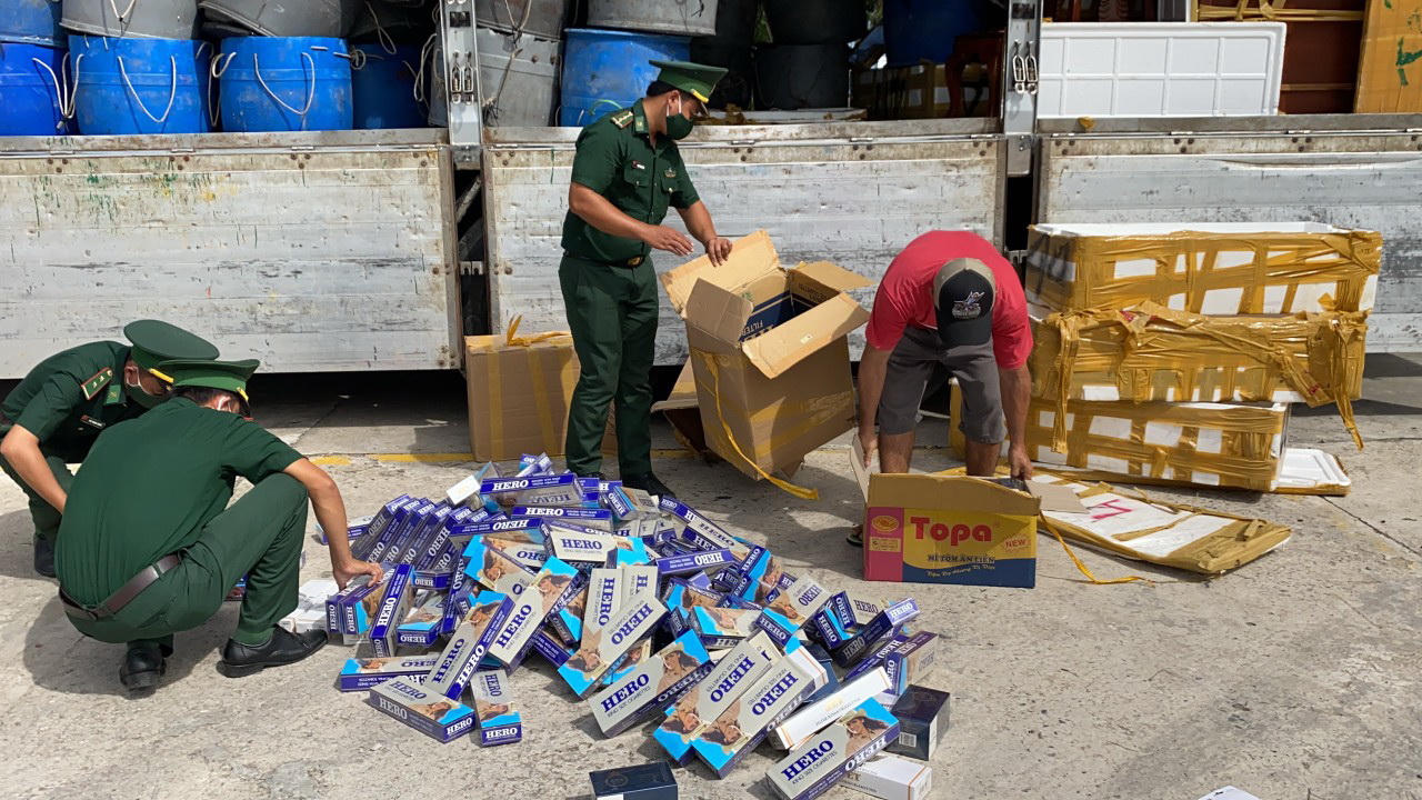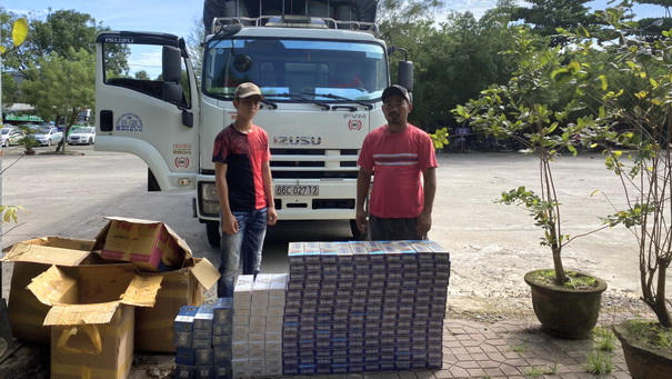 Trước đó, lúc 20h50 ngày 14/8, tại khu vực Cảng Thạnh Thới (ấp Bãi Vòng, xã Hàm Ninh, Phú Quốc, Kiên Giang), tổ công tác của Ban Chỉ huy Biên phòng CKC Dương Đông phát hiện xe tải vận chuyển thuốc lá ngoại nhập.