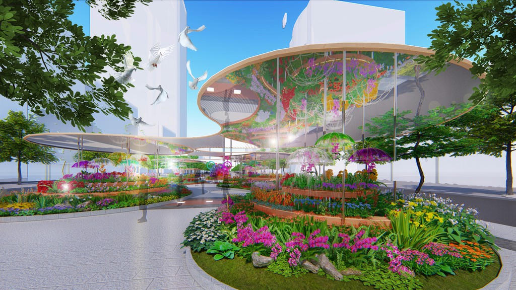 Đường hoa được khép lại bằng đại cảnh cổng kết lấy ý tưởng của bông hoa chuyển động Kinetic đường kính 5m, được tạo thành từ hơn 60 chi tiết. Bông hoa tượng trưng cho sự phát triển bền vững của TP HCM.