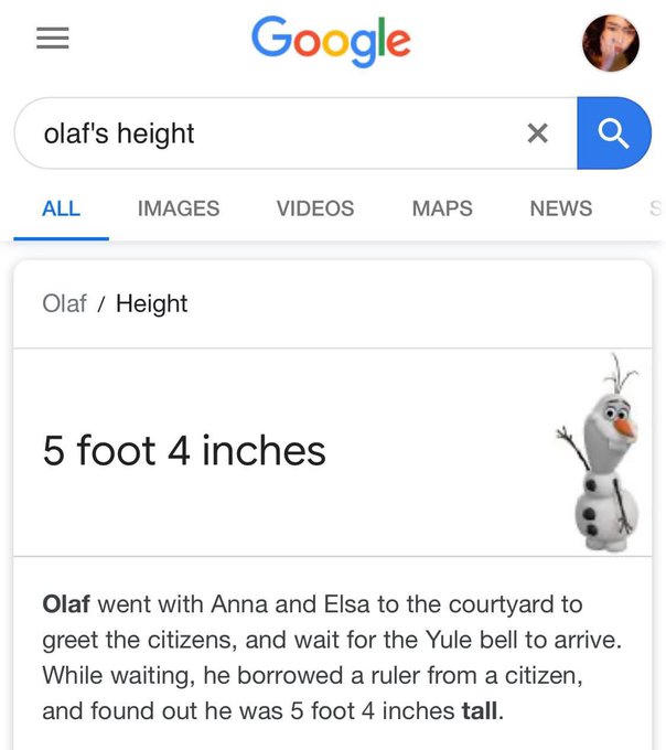 Nhiều cư dân mạng cho rằng nếu Olaf cao như thế thì Elsa và Anna phải cao hơn 3m.