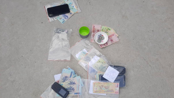 Tang vật thu giữ tại hiện trường gồm 3 hột xí ngầu, 1 chén sành, 4 xe môtô, 600 ngàn đồng tiền mặt và nhiều dụng cụ liên quan khác. Khám xét trên người các đối tượng, lực lượng chức năng thu giữ số tiền trên 23 triệu đồng.