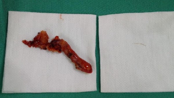 Sau khi tiến hành lấy dị vật sắc nhọn là chiếc xương cá trên, do mổ nội soi nên các bác sĩ phải làm rất cẩn thận để rửa sạch mọi ngóc ngách ổ bụng cũng như xử lý phần ruột thừa vỡ. Ca mổ diễn ra thành công trong 1 giờ đồng hồ.