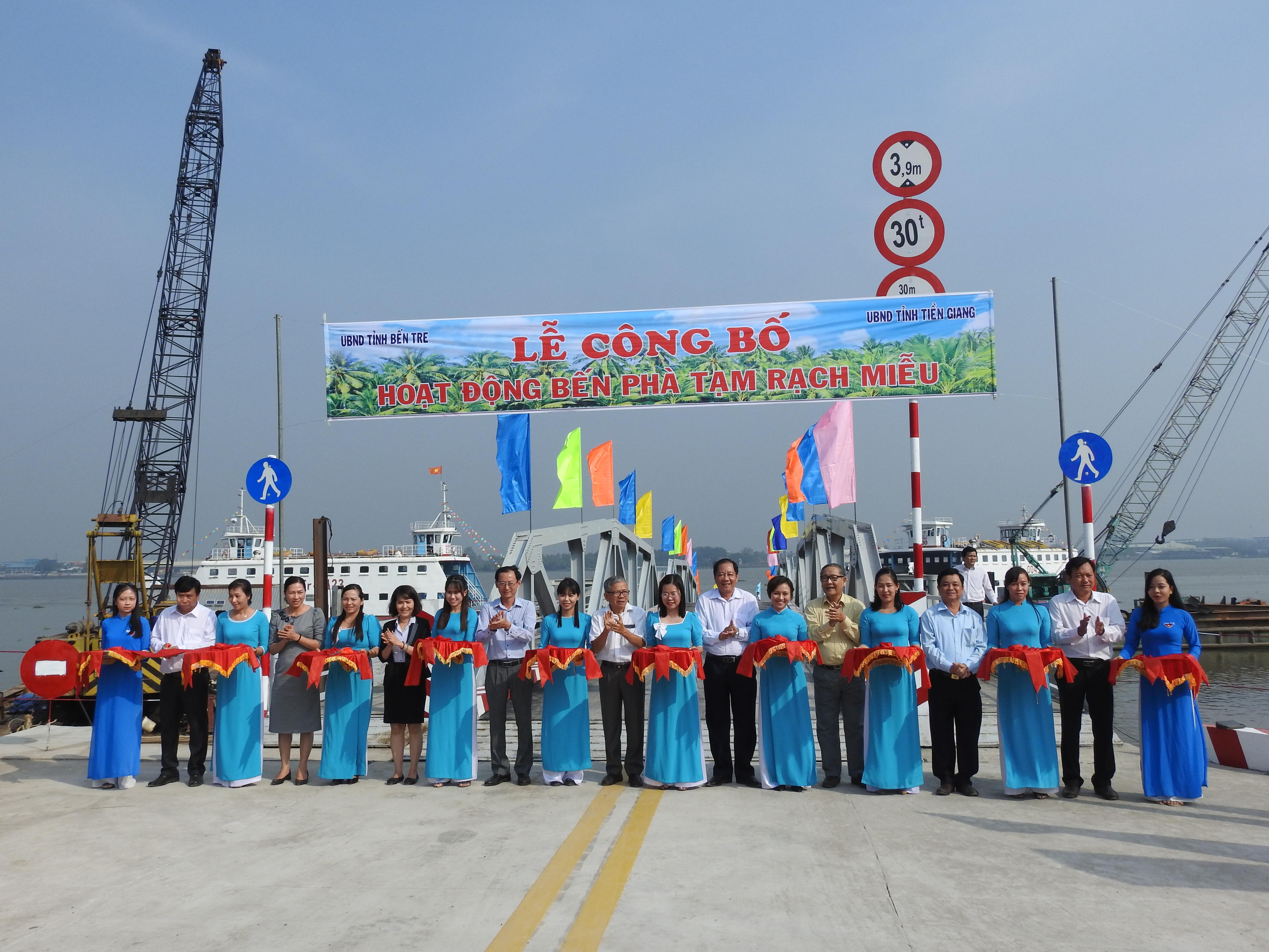 Sáng 27/01, UBND tỉnh Bến Tre tổ chức lễ khánh thành đưa vào hoạt động bến phà tạm Rạch Miễu, nối liền hai tỉnh Tiền Giang - Bến Tre.