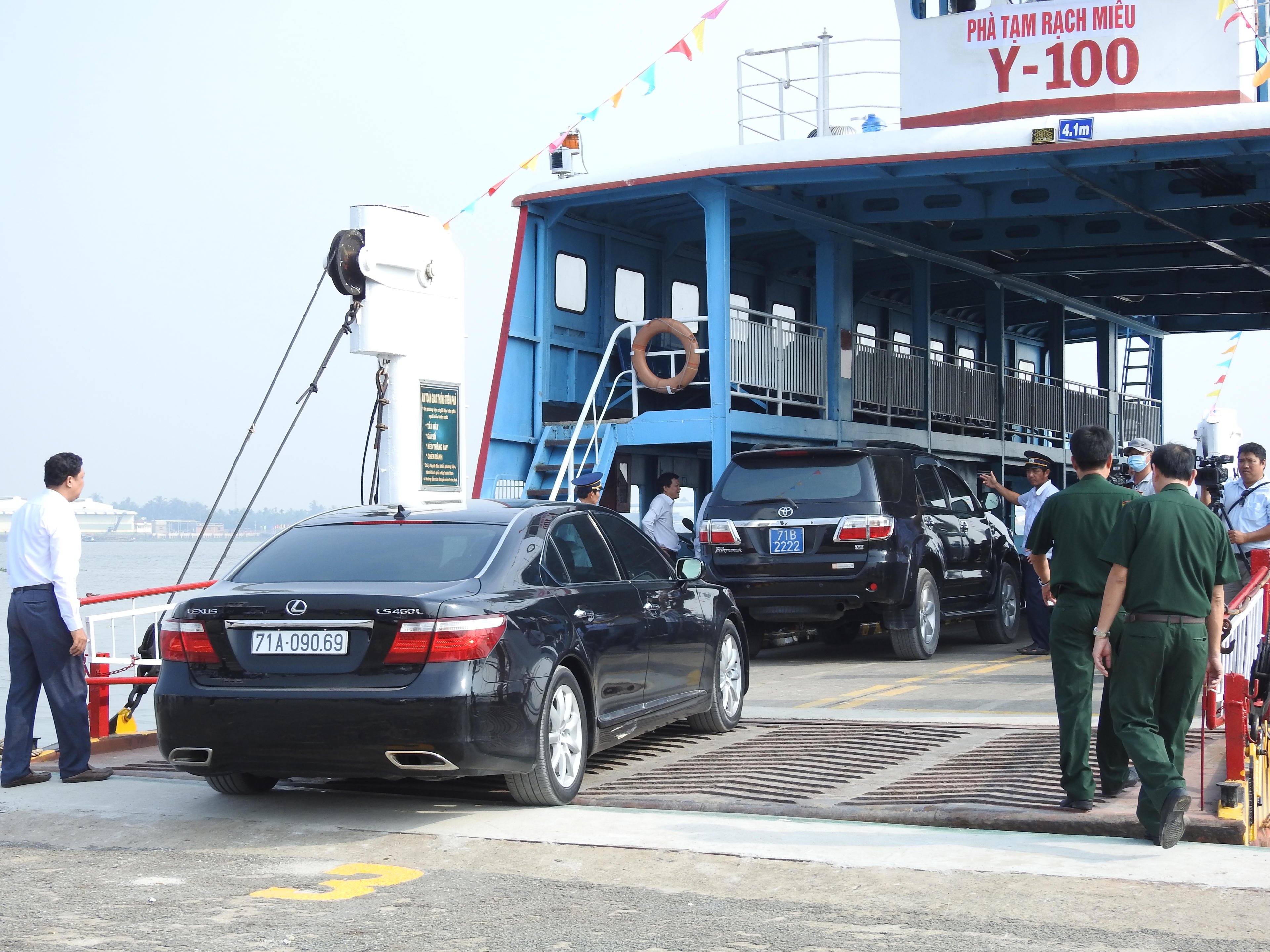 Bên cạnh đó, bến phà Rạch Miễu phục vụ cho tất cả các loại phương tiện có tải trọng dưới 30 tấn, có khoảng không chiều cao giới hạn nhỏ hơn 3,9m; miễn phí hoàn toàn cho người đi bộ và xe 2 bánh, trong khi tất cả các phương tiện còn lại sẽ thu phí bằng với mức phí đang áp dụng ở trạm thu phí cầu Rạch Miễu - ông Từ Anh Nguyên - Giám đốc ban quản lý bảo trì công trình đường bộ (Sở GTVT Bến Tre) cho biết thêm.