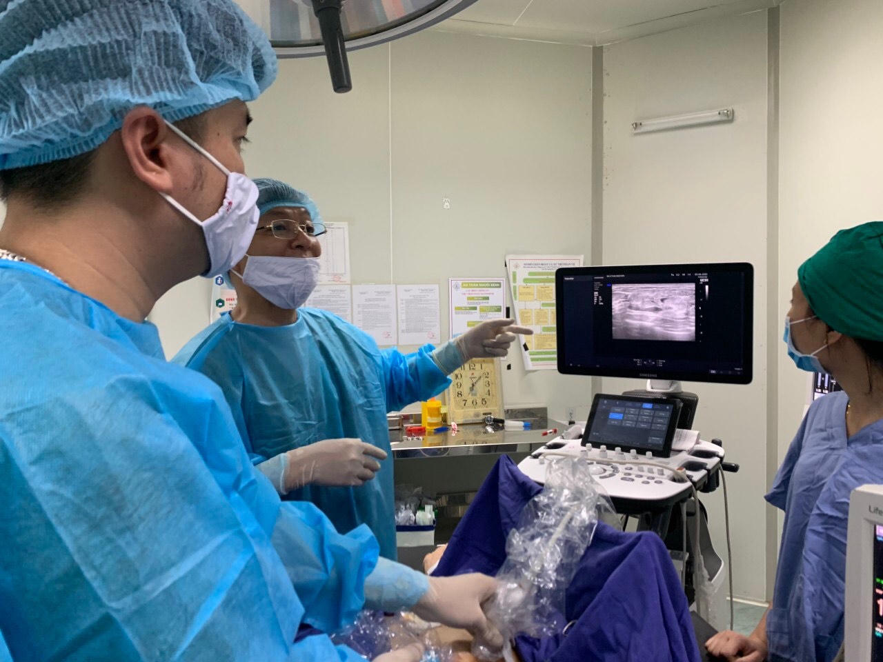 Không chỉ áp dụng công nghệ mới để điều trị u tuyến giáp bằng sóng cao tần ARF, Khoa Sản Bệnh viện A Thái Nguyên còn triển khai kỹ thuật hiện đại sinh thiết chân không VABB. Đây là phương pháp chẩn đoán và điều trị bệnh lý u tuyến vú bằng thiết bị sinh thiết và có hỗ trợ hút chân không.