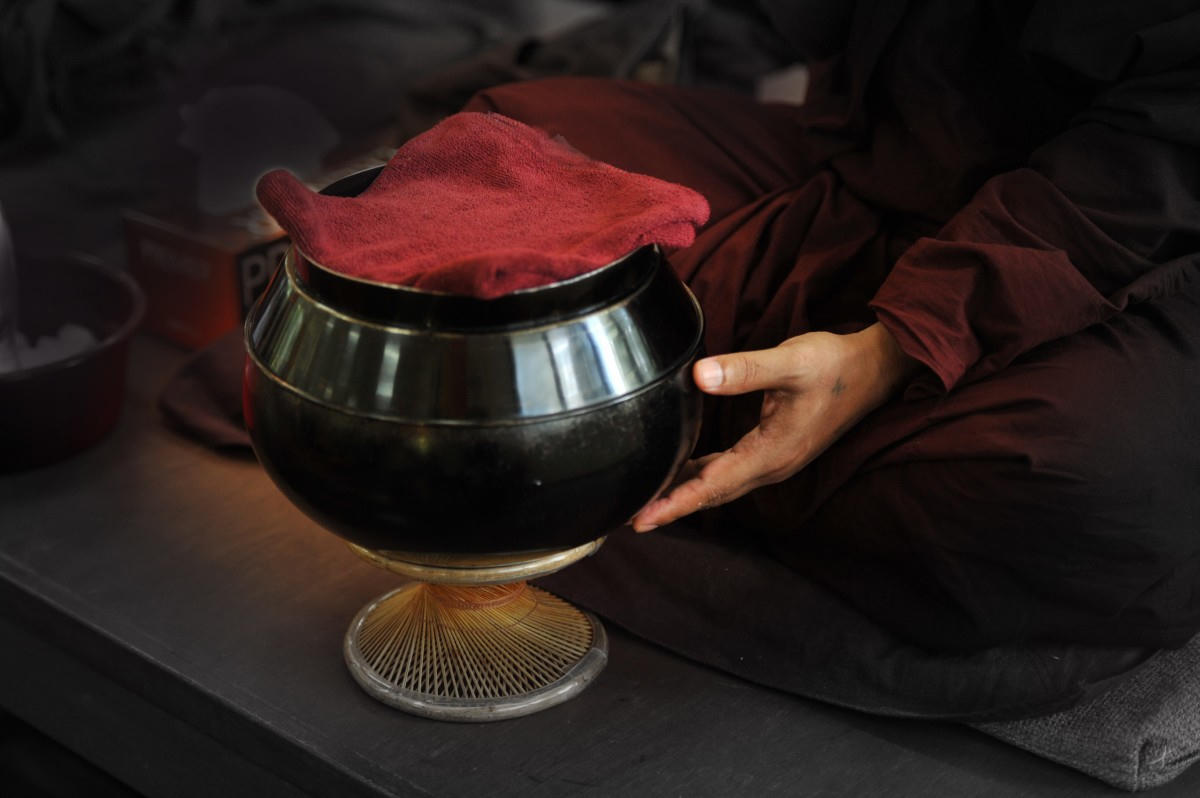 Mỗi lần đi khất thực, tay nâng bình bát đang còn trống không, đức Phật dạy đệ tử của Ngài không phiền muộn, không lo lắng mà phải an tịnh và nhận đồ cúng dường với tâm bình đẳng.