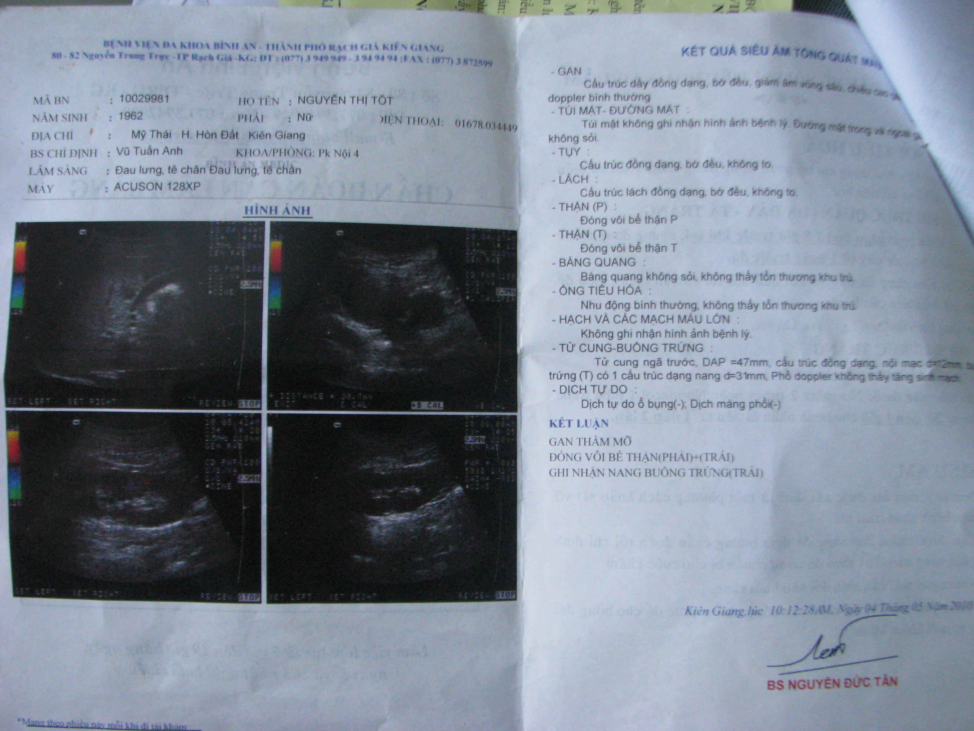 Kết quả siêu âm bệnh của bà Tốt.