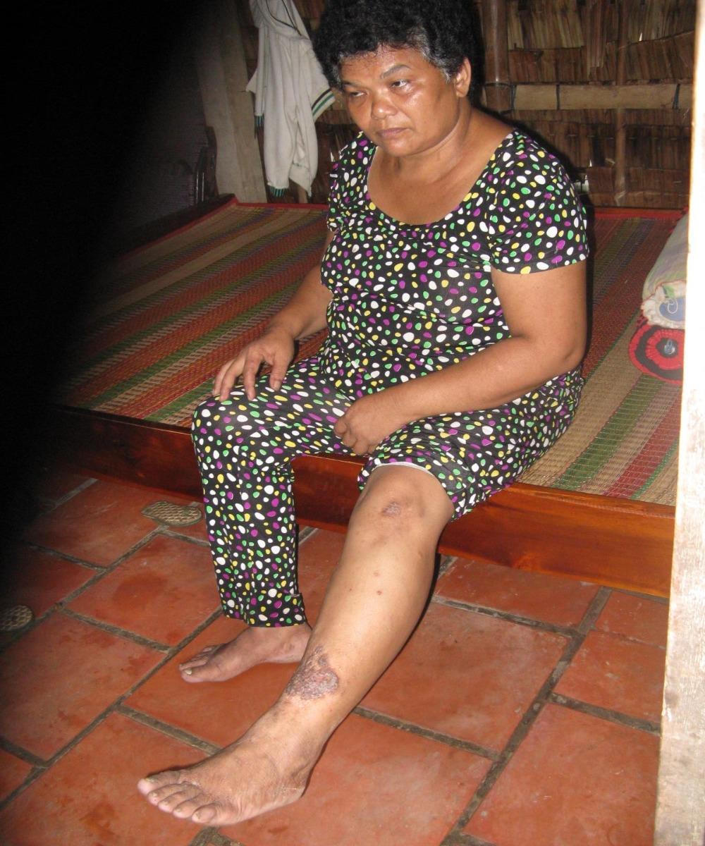 Những dấu bệnh vẫn còn trên chân, tay bà Cốt.