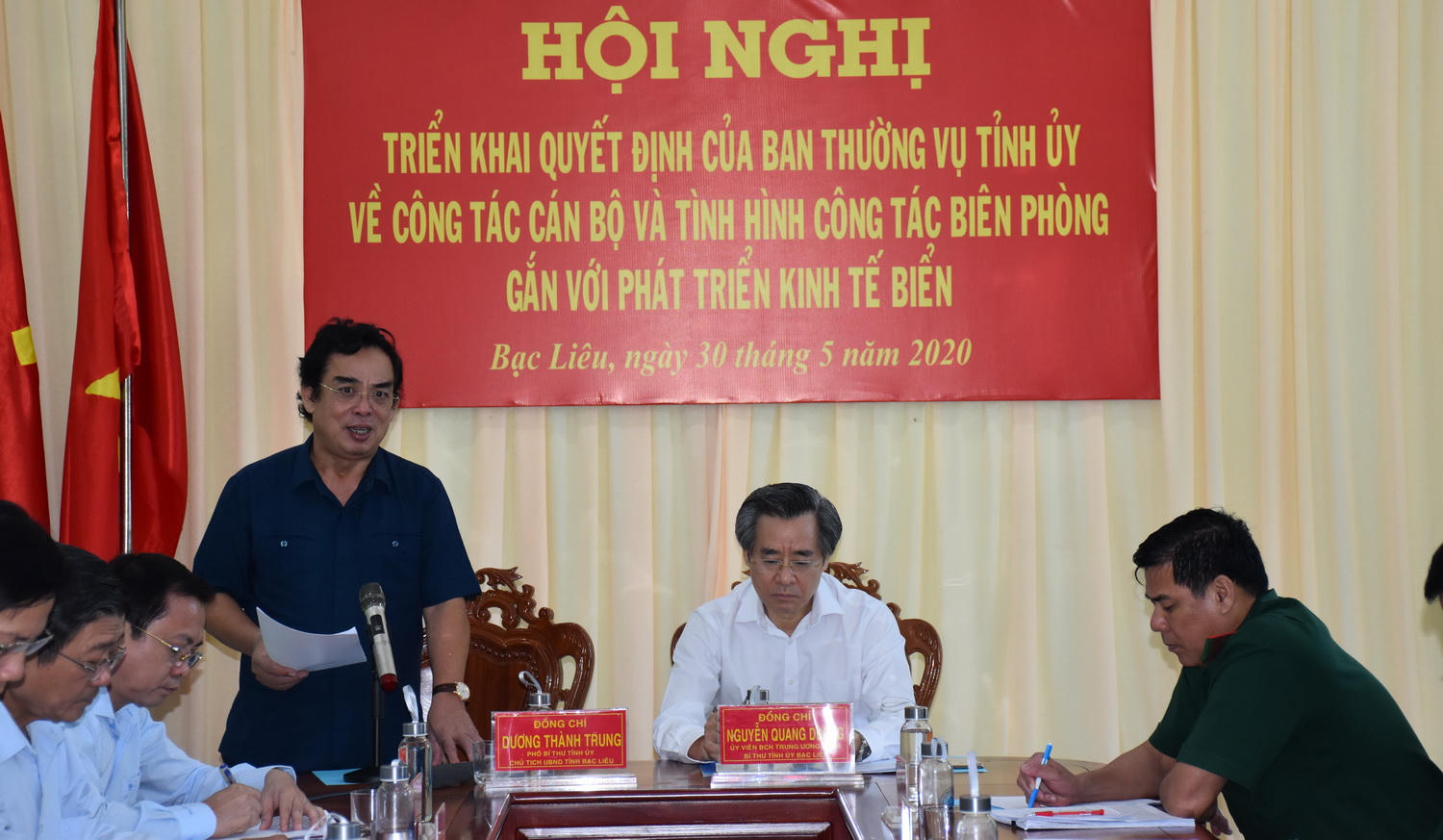 (PLVN) - Chiều 30/5, tại Bộ Chỉ huy Bộ đội Biên phòng tỉnh Bạc Liêu, ông Nguyễn Quang Dương - Ủy viên BCH TW Đảng, Bí thư Tỉnh ủy Bạc Liêu đã đến dự và phát biểu chỉ đạo hội nghị triển khai Quyết định của Ban Thường vụ Tỉnh ủy về công tác cán bộ và tình hình công tác biên phòng gắn với phát triển kinh tế biển.