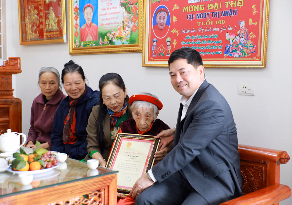 Tại phường Cảnh Thụy, Bí thư Tỉnh ủy Nguyễn Hồng Thái đã đến thăm, chúc Tết và trao Thiếp mừng thọ 100 tuổi của Chủ tịch nước cho cụ Ngụy Thị Nhận, trú tại tổ dân phố Phùng Hưng, ân cần thăm hỏi sức khỏe, đời sống của cụ, bày tỏ sự trân trọng trước những đóng góp của các thế hệ cao tuổi đối với sự nghiệp xây dựng và bảo vệ quê hương.