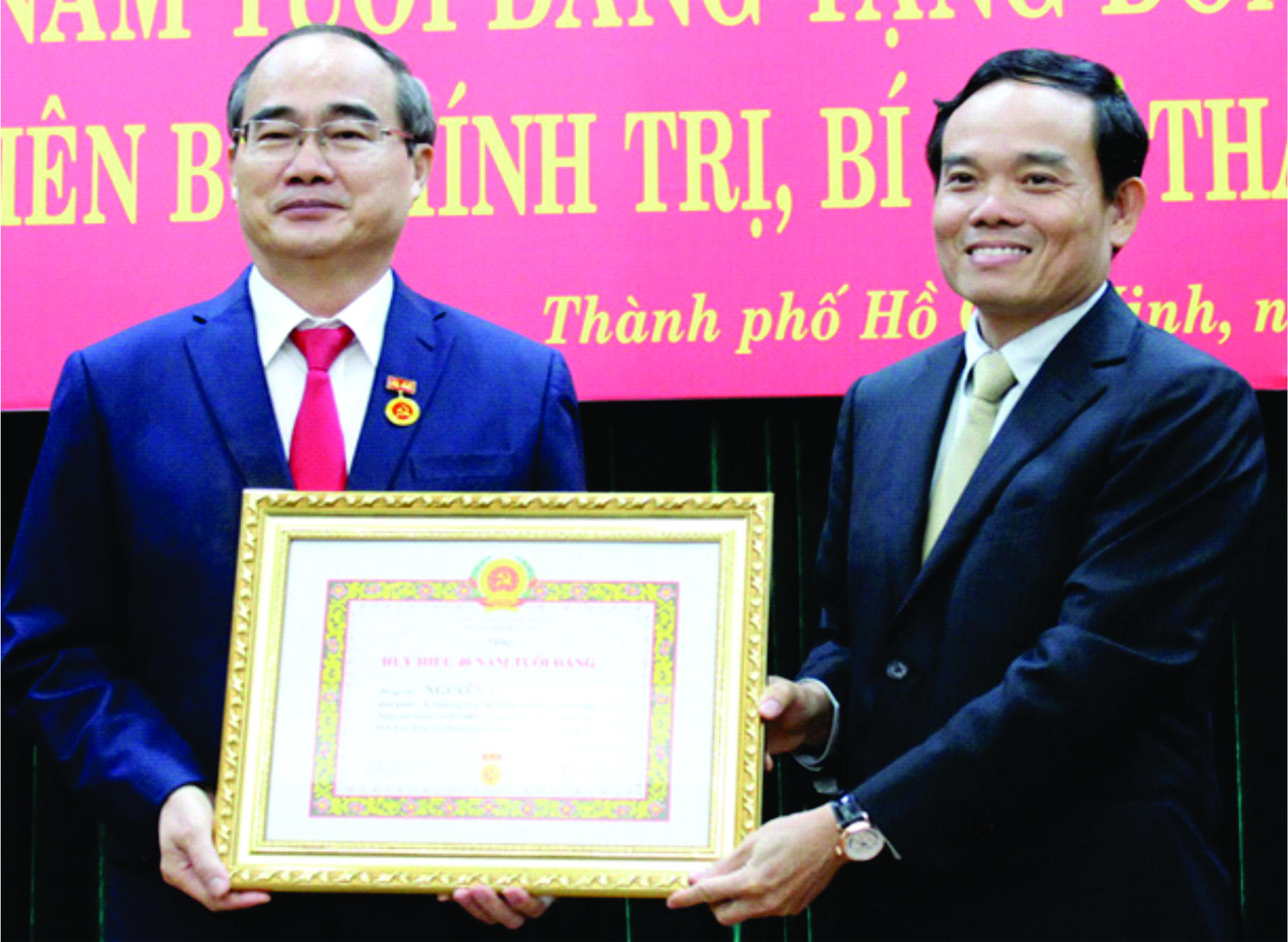 Bí thư Thành ủy TPHCM Nguyễn Thiện Nhân nhận Huy hiệu 40 năm tuổi Đảng