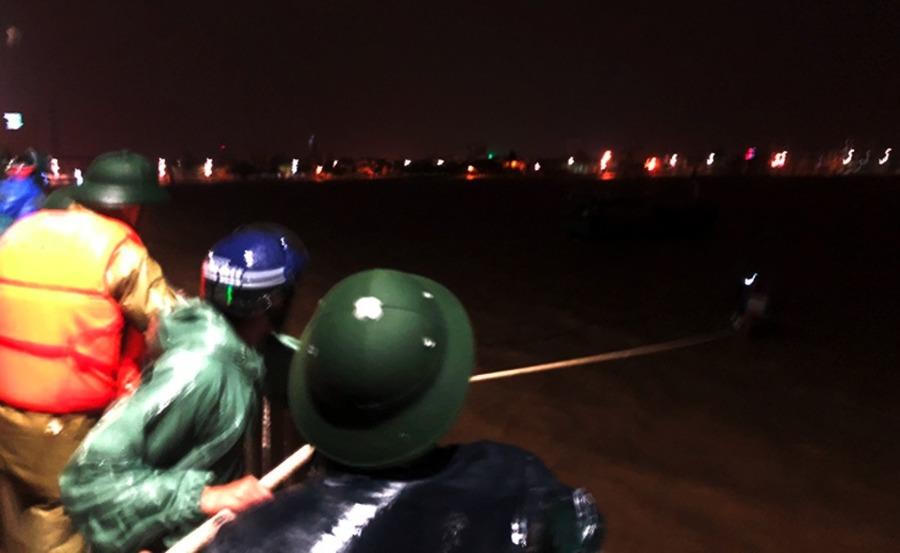 Nhận tin báo, Đồn Biên phòng Nhật Lệ đã huy động hàng chục cán bộ, chiến sĩ cùng người thân ngư dân ra tín hiệu khẩn cấp cứu.