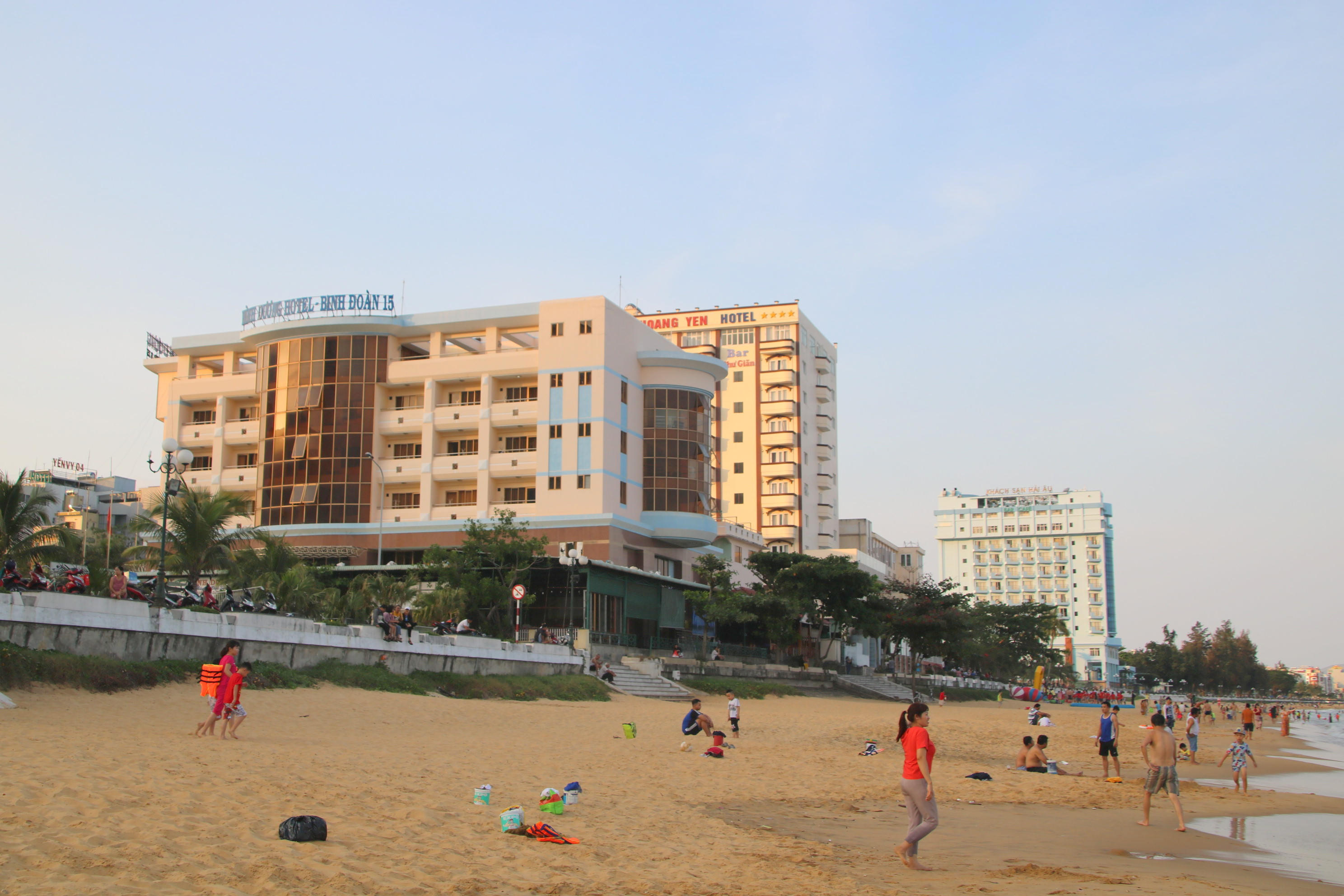 Các khách sạn Bình Dương, Hoàng Yến, Hải Âu nhìn từ bờ biển Quy Nhơn.