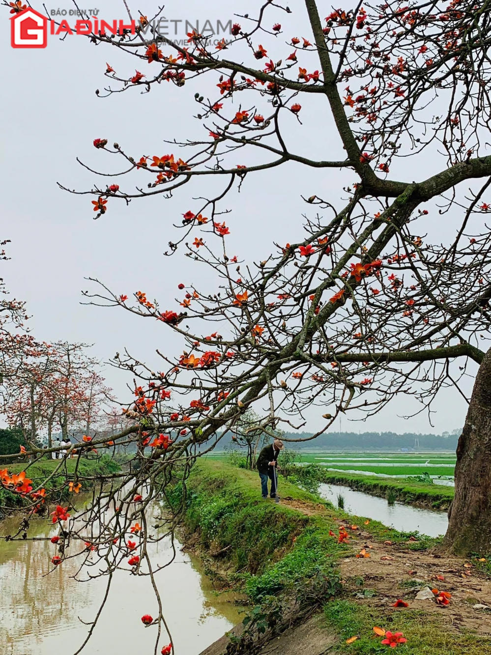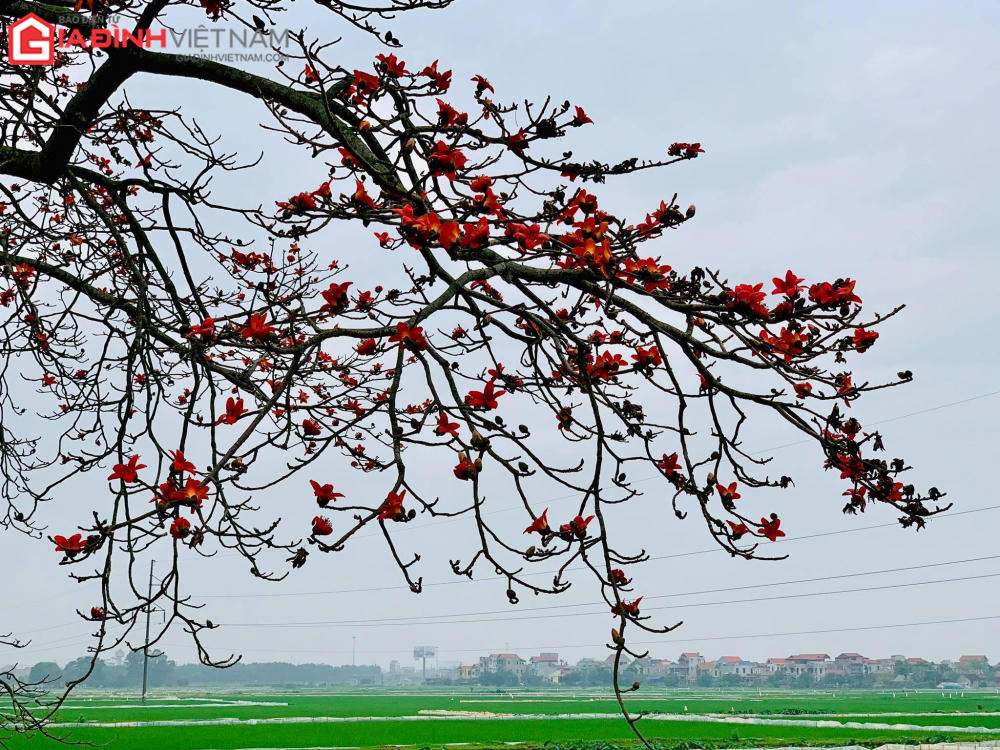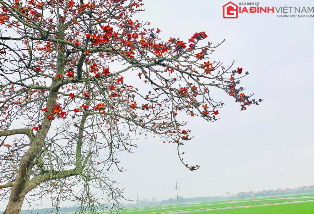Những cành cây gạo khẳng khiu đã trút hết lá trong mùa đông lạnh giá, nay lại hé nở từng búp lộc xanh non. Trên tán cây ấy lại bừng đỏ những bông hoa như thắp lửa rực rỡ trong tiết trời tháng ba.