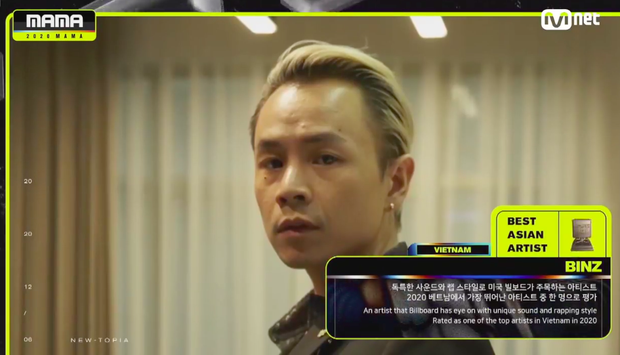 Bên cạnh AMEE, một nghệ sĩ khác đến từ Việt Nam là rapper Binz cũng nhận được giải thưởng "Best Asian Artist Vietnam" (Nghệ sĩ mới xuất sắc châu Á – khu vực Việt Nam). Tuy nhiên, kết quả này lại không hề khiến fan Việt quá hào hứng bởi trước đó, chính nam rapper đã tự “khoe” chiếc cúp trên trang cá nhân. Không ít cư dân mạng còn hài hước “giả vờ bất ngờ” trước giải thưởng của Binz tại MAMA.