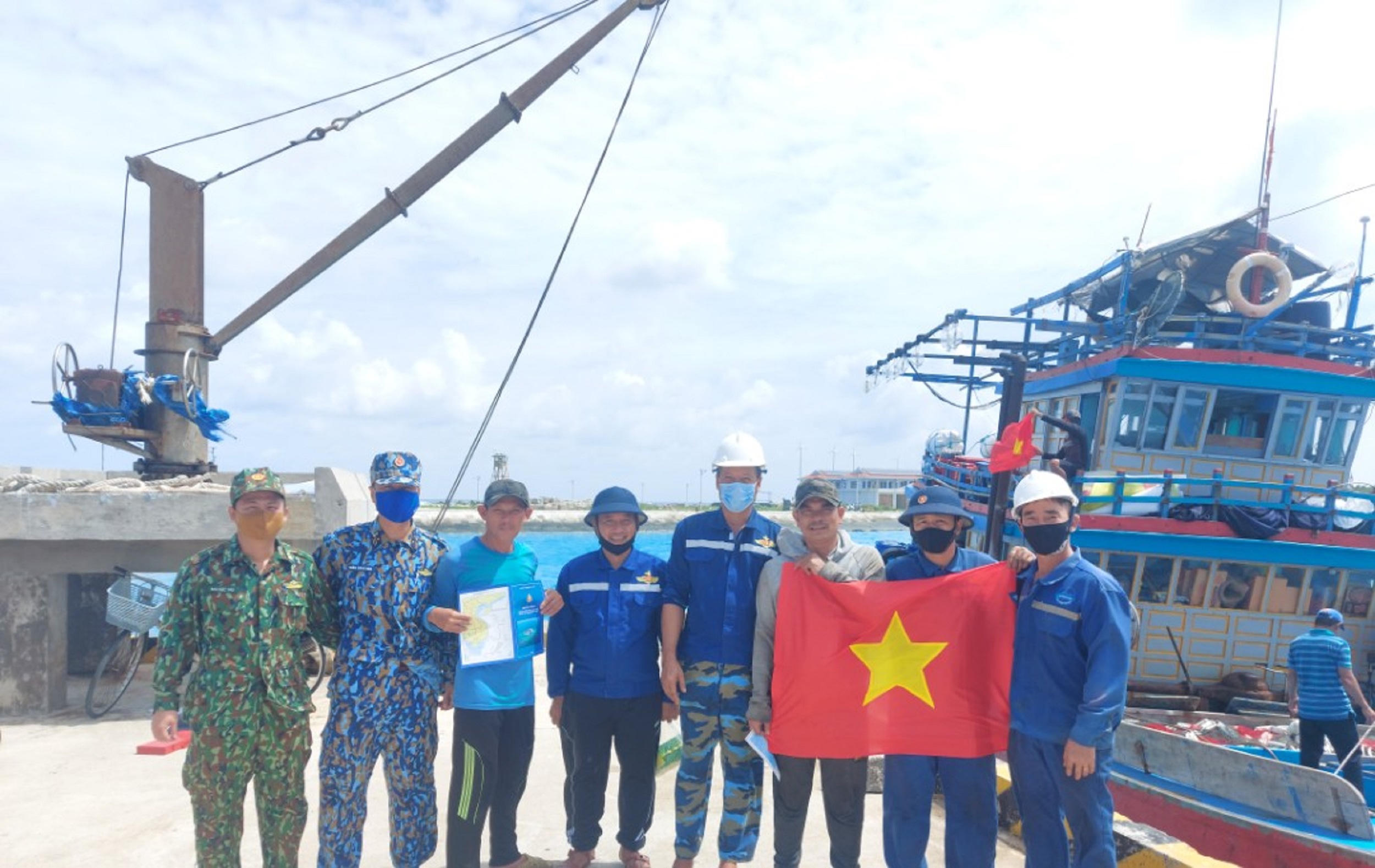 Cùng với khắc phục sự cố máy tàu, cán bộ, nhân viên Trung tâm tổ chức tuyên truyền cho ngư dân về chức năng, nhiệm vụ, những hỗ trợ của các Âu tàu, làng chài tại Quần đảo Trường Sa của Việt Nam; Chỉ thị 45 của Thủ tướng Chính phủ về một số nhiệm vụ, giải pháp cấp bách khắc phục cảnh báo của EU về chống khai thác hải sản bất hợp pháp, không báo cáo và không theo quy định. Tặng cờ Tổ quốc và cấp miễn phí 2.000 lít nước ngọt cho ngư dân.