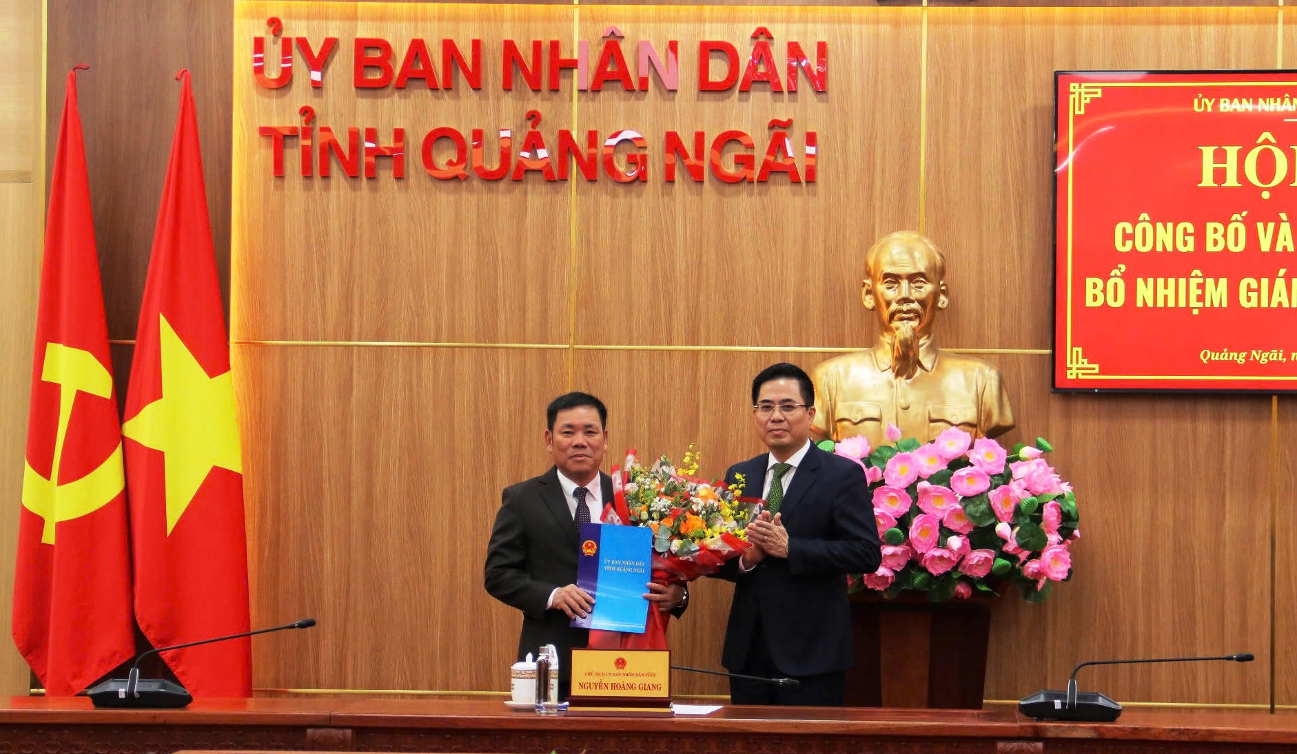 Ông Nguyễn Thanh Hoài (trái) được bổ nhiệm Giám đốc Trung tâm Phục vụ hành chính công tỉnh Quảng Ngãi.