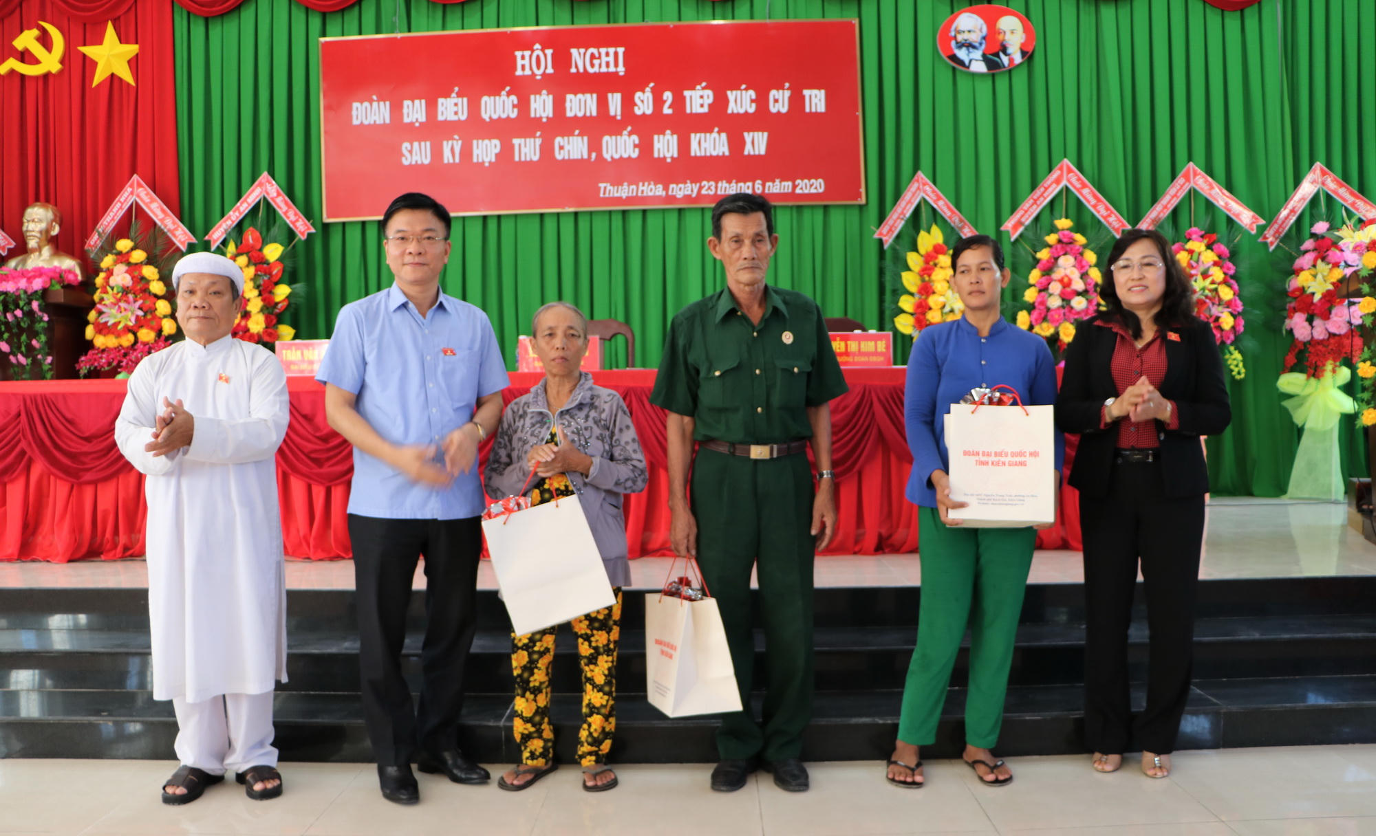 Nhân dịp này, Đoàn ĐBQH tỉnh Kiên Giang đã tặng 3 phần quà cho các gia đình chính sách và hộ có hoàn cảnh khó khăn trên địa bàn xã Thuận Hòa (An Minh, Kiên Giang).