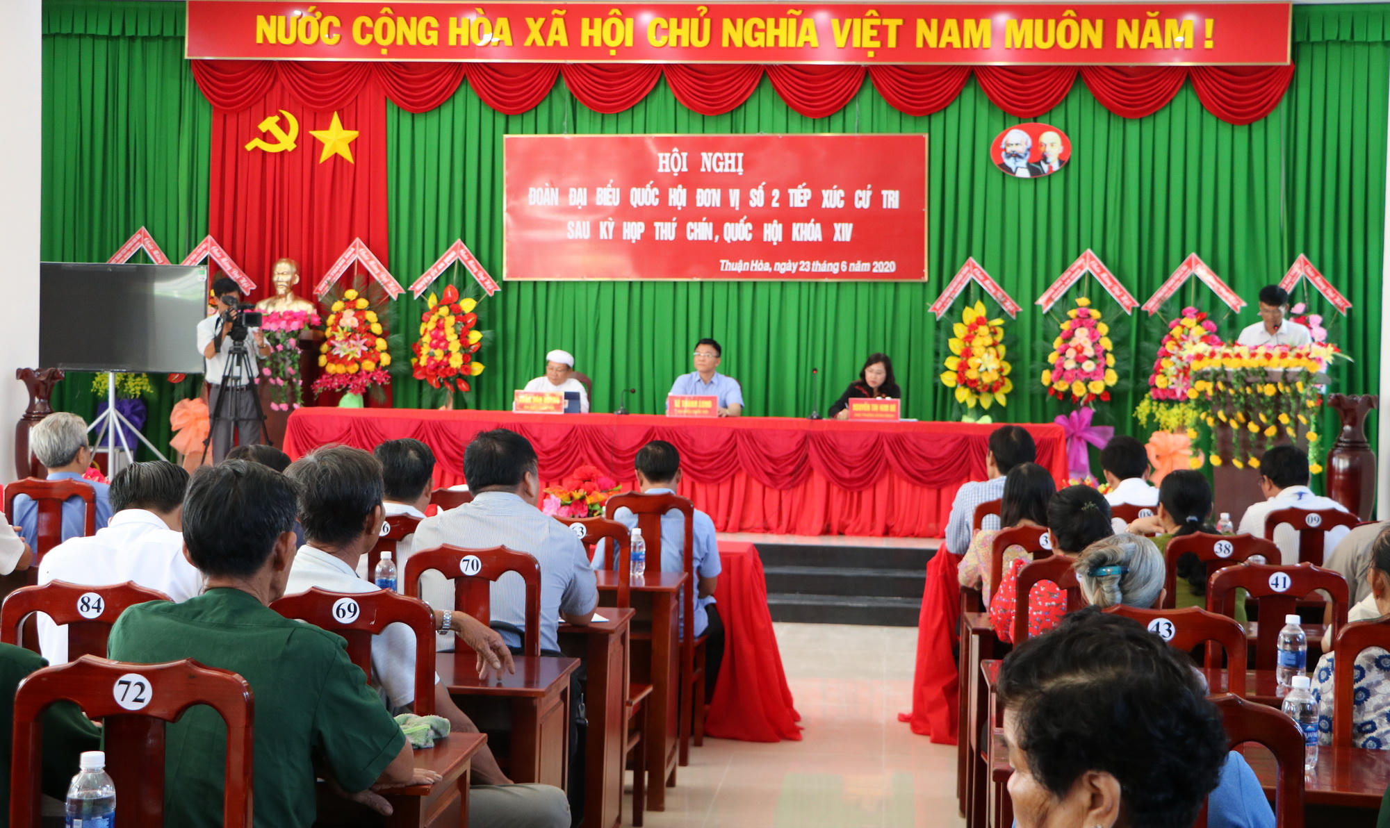 Phát biểu tại buổi tiếp xúc, cử tri Nguyễn Hoàng Nghĩa (ngụ tại ấp Bần B, xã Thuận Hòa) và cử tri Nguyễn Thị Kim Thoa (ngụ tại ấp 2, xã Thuận Hòa) thắc mắc về vấn đề người cao tuổi, vấn đề hưởng chính sách của người có công… Ngoài ra, còn nhiều vấn đề khác được các cử tri phản ánh như: chế độ đối với người có công cách mạng, gia đình chính sách; bảo hiểm xã hội; kê khai tài sản; phòng, chống tham nhũng… Từ đó, mong muốn ĐBQH xem xét, xử lý phù hợp với tình hình của người dân địa phương.