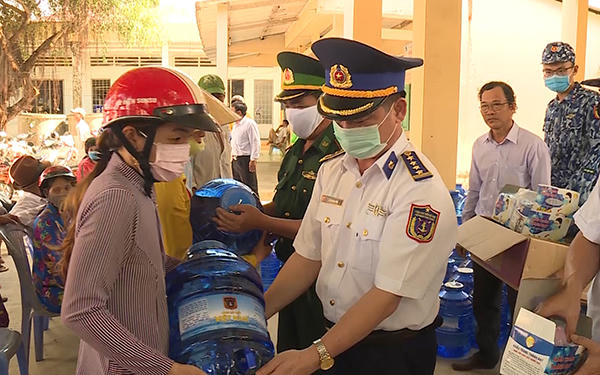 Bộ Tư lệnh Vùng Cảnh sát biển 3 tặng nước uống tinh khiết cho người dân Bến Tre