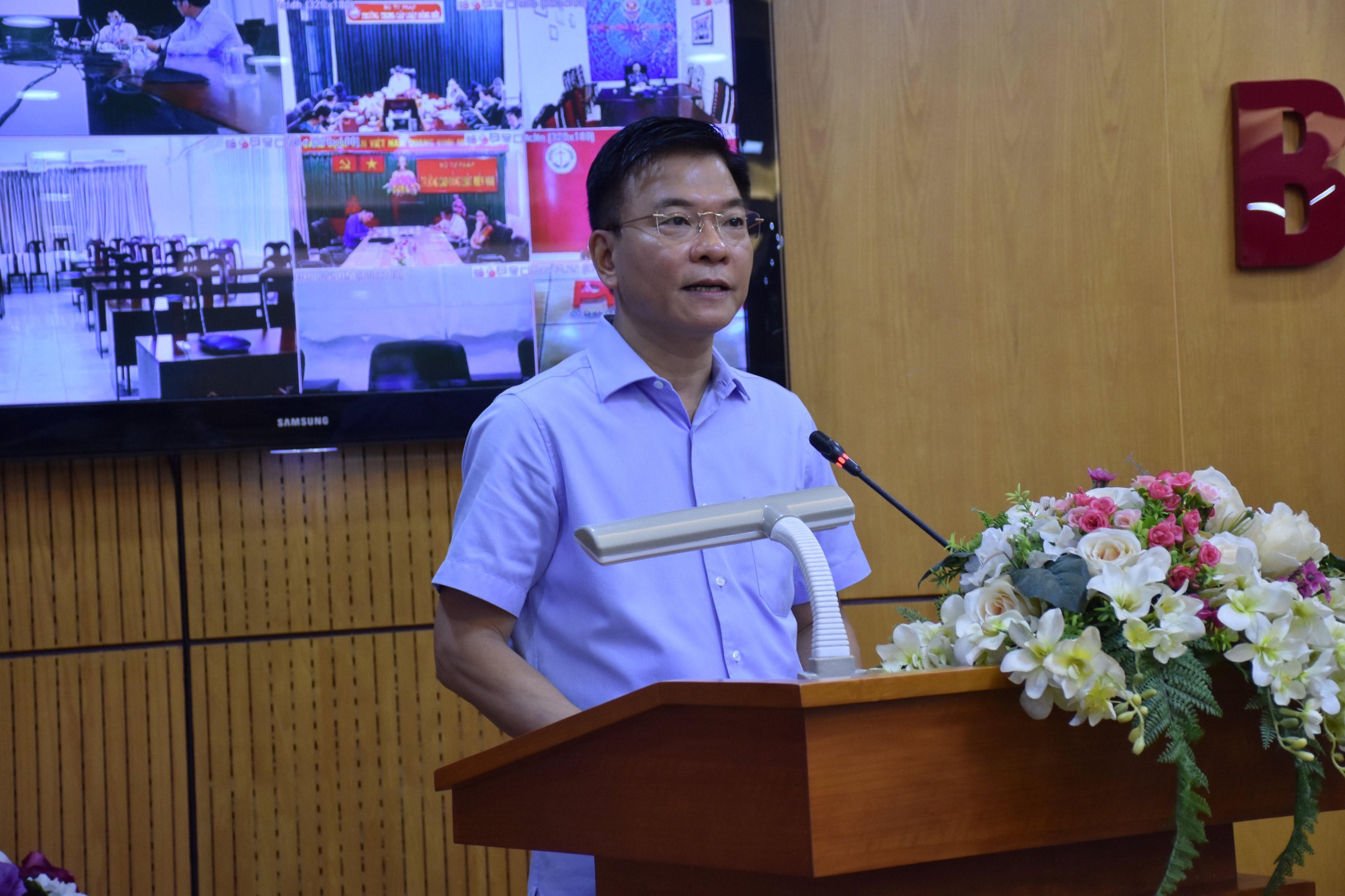 Đồng chí Hoàng Xuân Châu, Hiệu trưởng trường Trung cấp Luật Thái Nguyên (nay là trường Cao đẳng luật miền Bắc) gửi lời cảm ơn chân thành đến Ban cán sự Đảng, lãnh đạo Bộ Tư pháp đã luôn quan tâm, chỉ đạo sát sao, quyết liệt và đồng hành, giúp đỡ chia sẻ những khó khăn, thách thức để các trường có bước phát triển mới như ngày hôm nay.