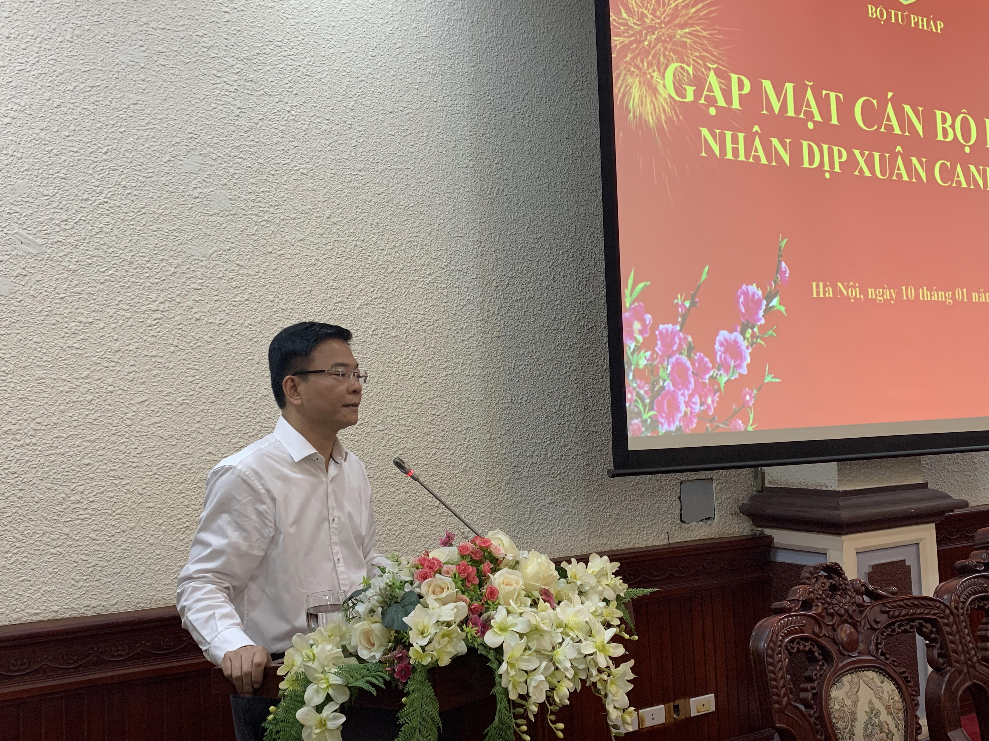 Trong không khí thân mật, đầm ấm và đầy ý nghĩa, thay mặt Ban Cán sự, lãnh đạo và tập thể cán bộ, công chức, viên chức Bộ Tư pháp, Bộ trưởng Lê Thành Long đã thông tin tới các cán bộ hưu trí về tình hình, kết quả công tác năm 2019 và mục tiêu, phương hướng công tác năm 2020 của Bộ, ngành Tư pháp.